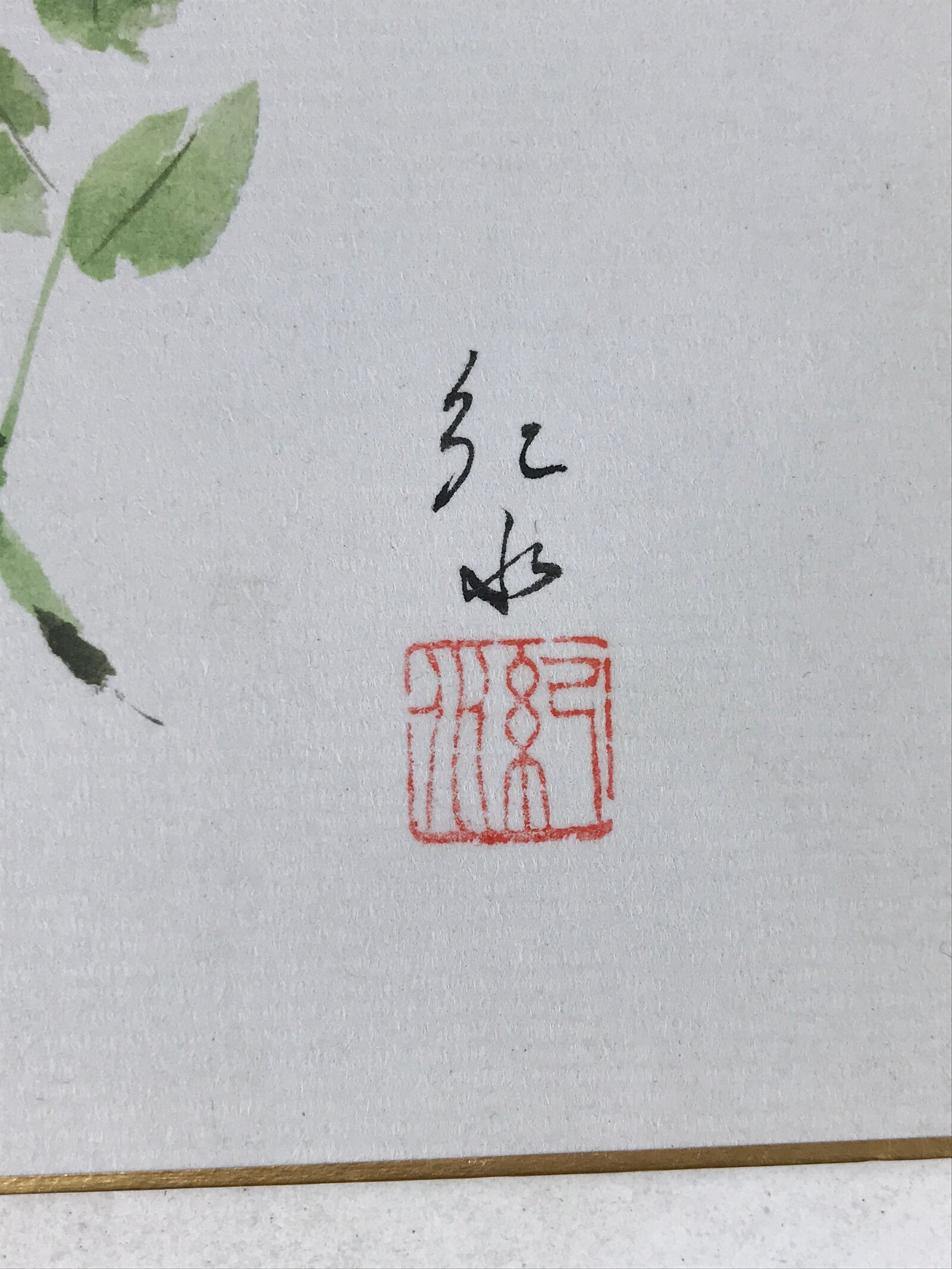 Japanese Shikishi Art Board Painting White Peony Flowers Green Nature A587