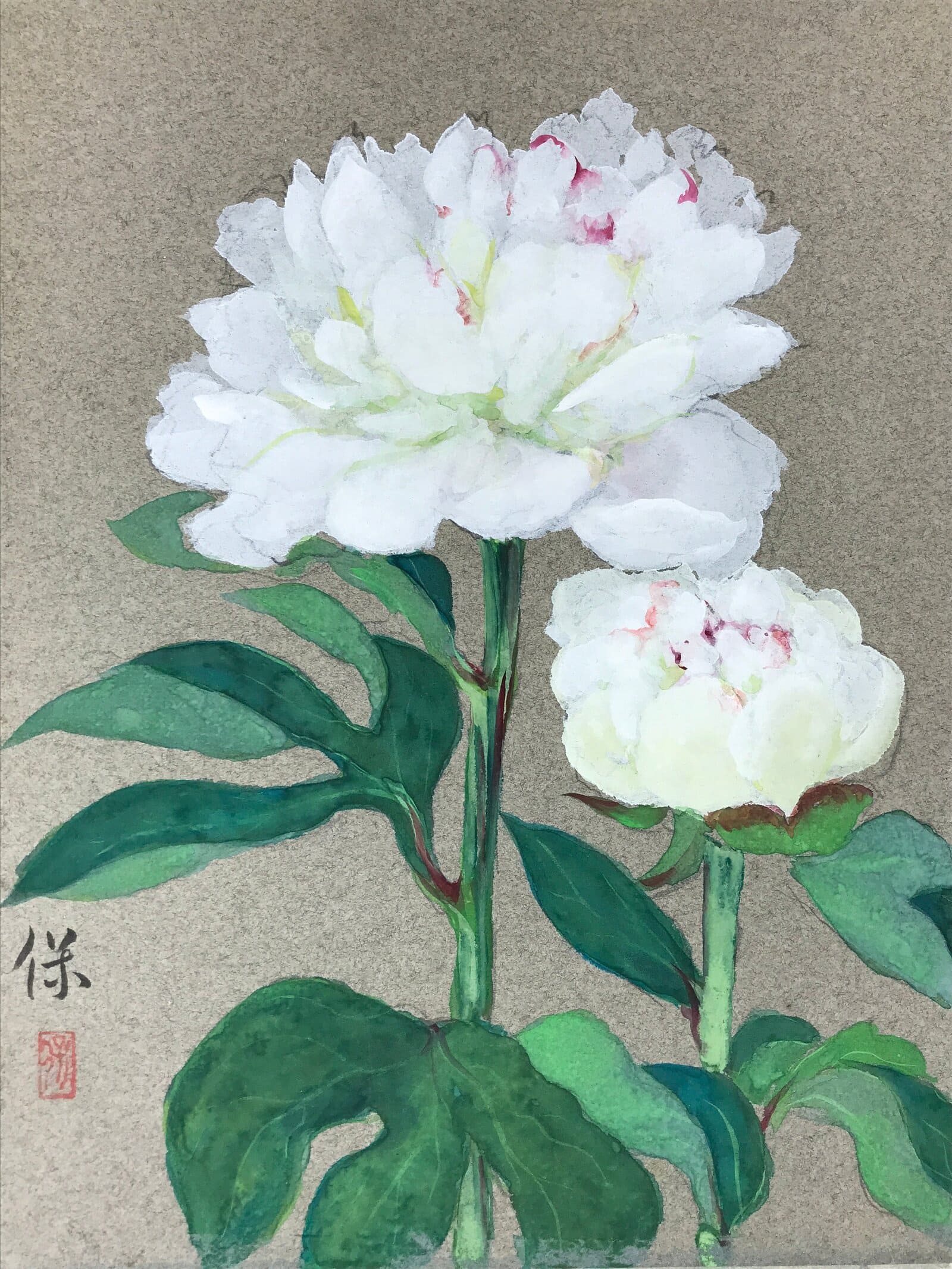 January 21, 2026Japanese Shikishi Art Board Painting White Peony Flowers Green Nature A587