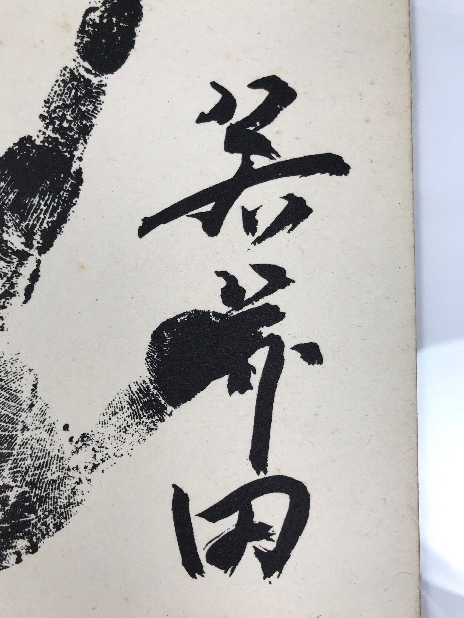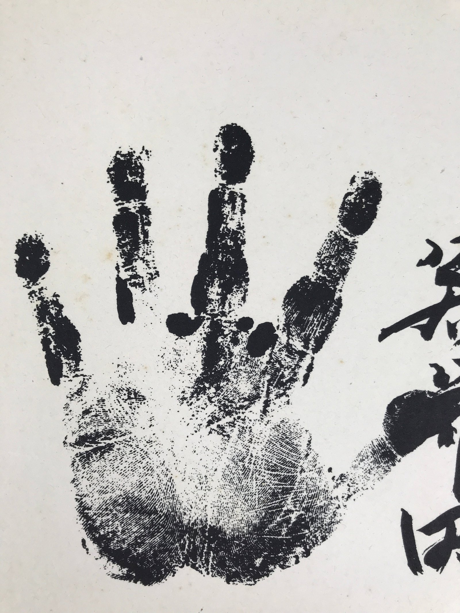 This Japanese shikishi art board features a printed reproduction of a handprint of a Sumo wrestler, called tegata in Japanese. The sign of the wrestler is on the right of the handprint. This sumo wrestler was famous in the latter portion of the Showa Era and called Wakahanada.