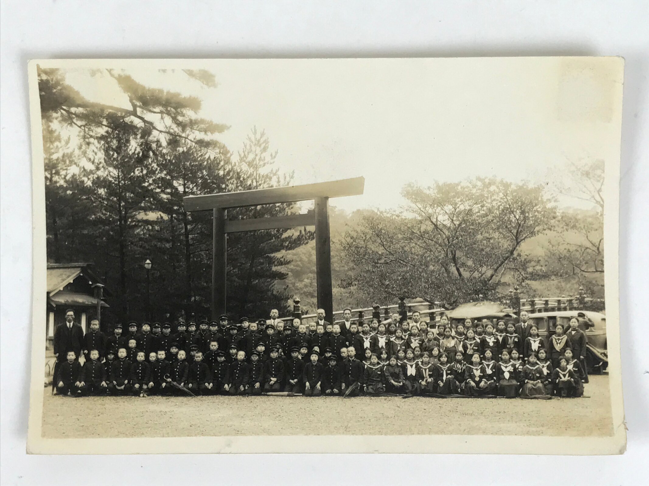 Japanese Showa School Class Trip Photograph Vtg Group Ise Shrine Sepia PH127