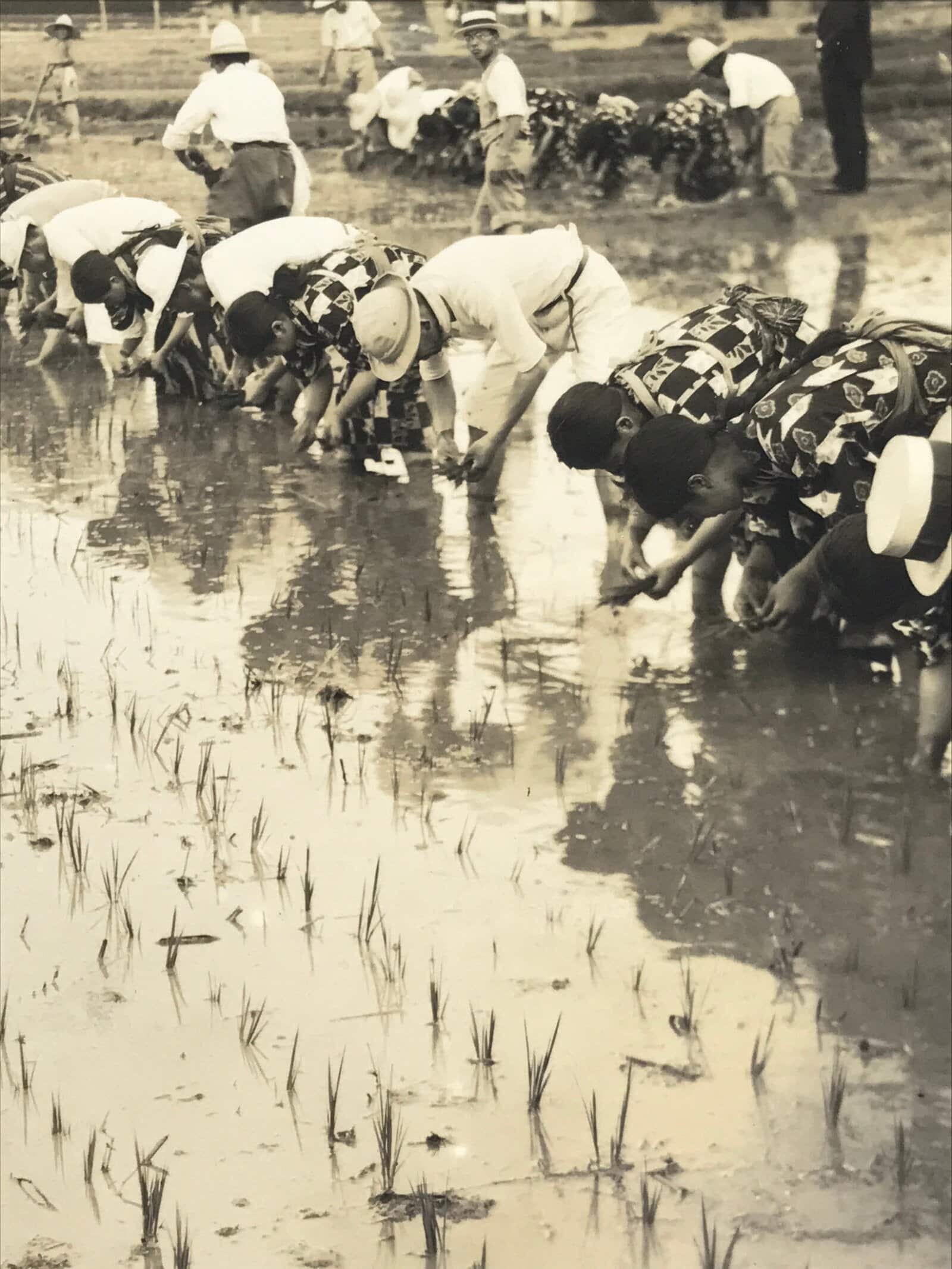 Vintage Japanese School Group Rice Planting Photograph