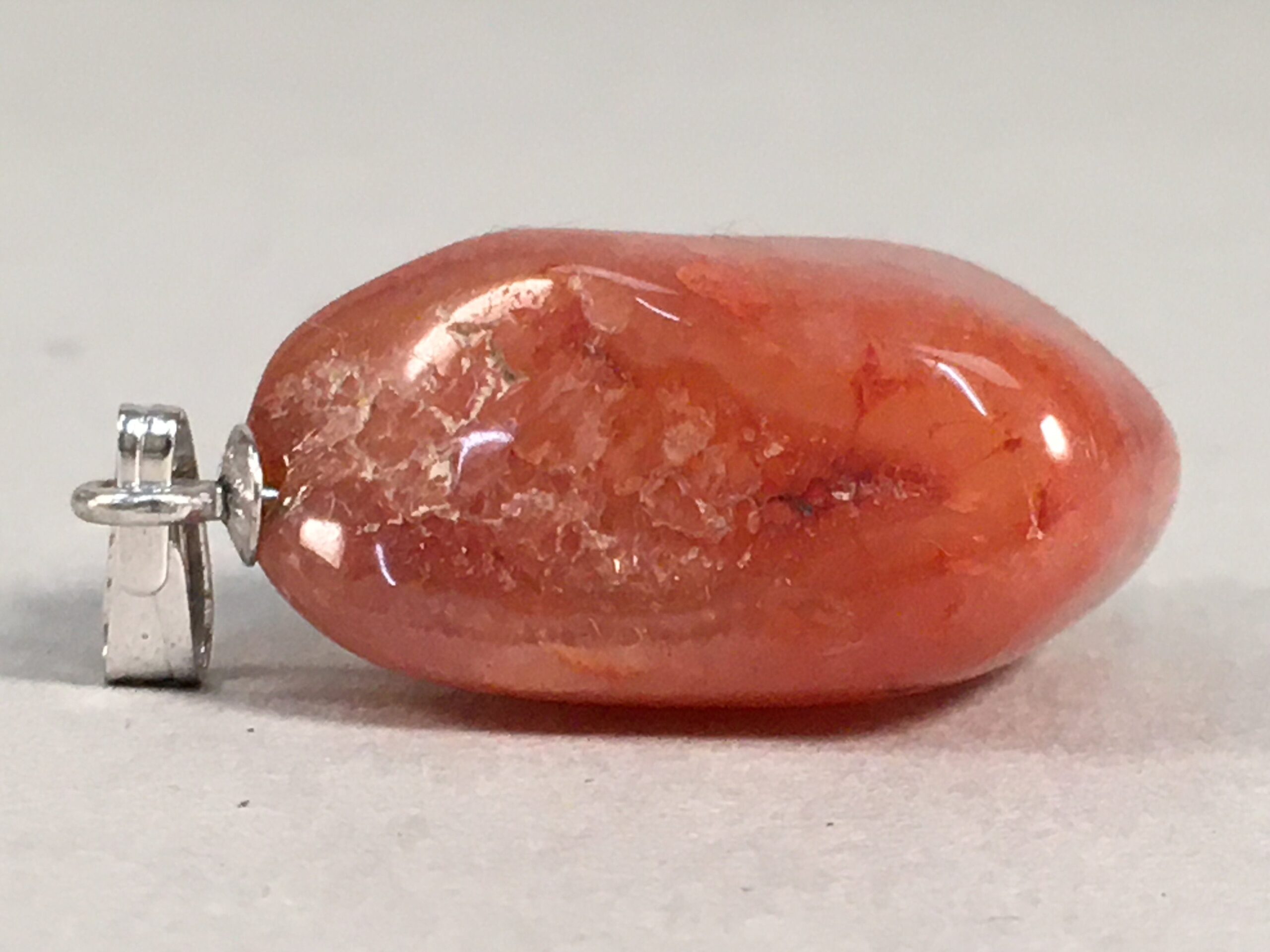 January 18, 2026Japanese Stone Pendant Vtg Red Shiny Natural Brown Silver Parts JK55