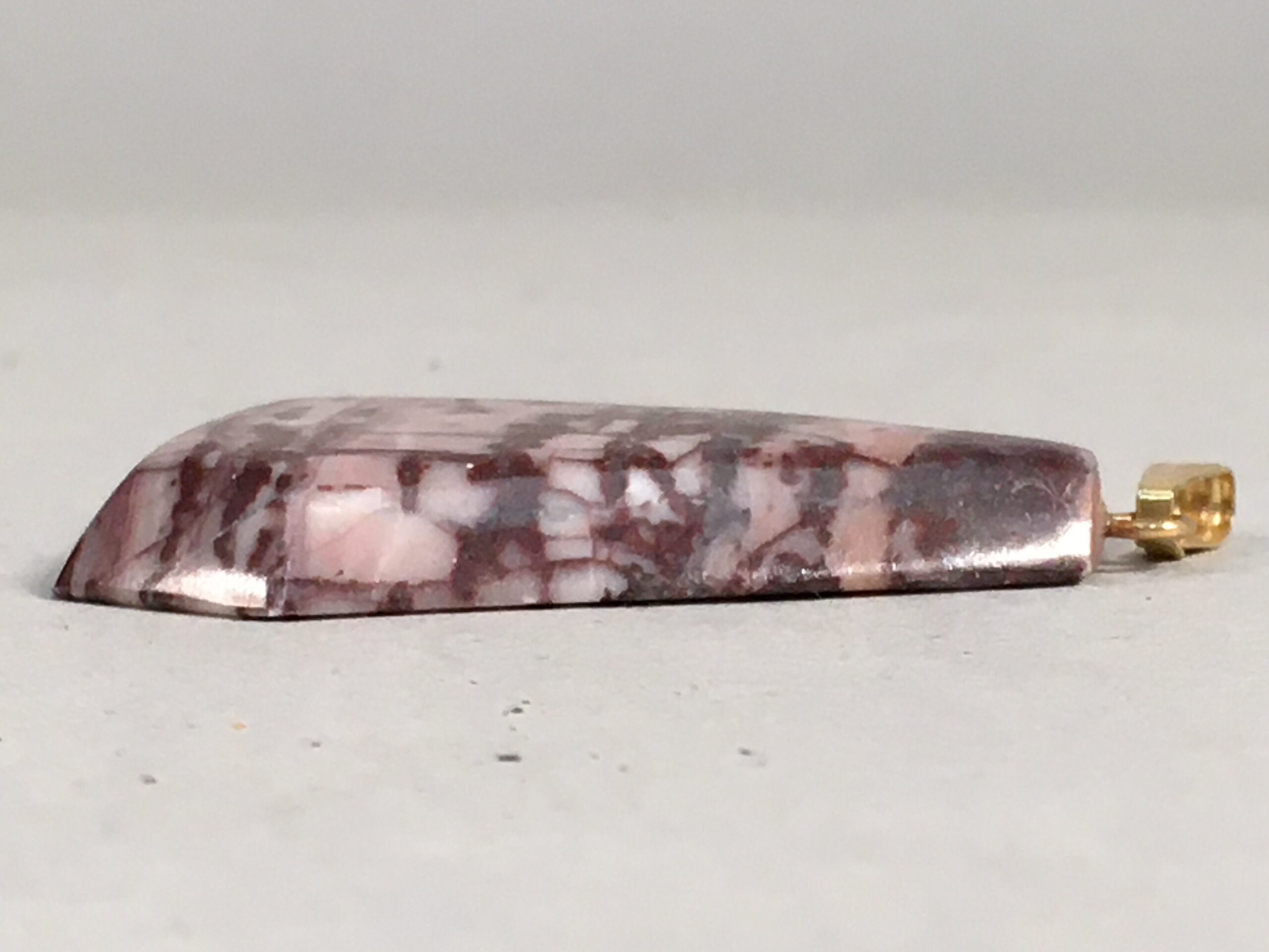 - Approx. : 3.8 cm long (stone only), 4.8 cm long (with metal parts) x 3 cm wide x 0.5 cm thick
