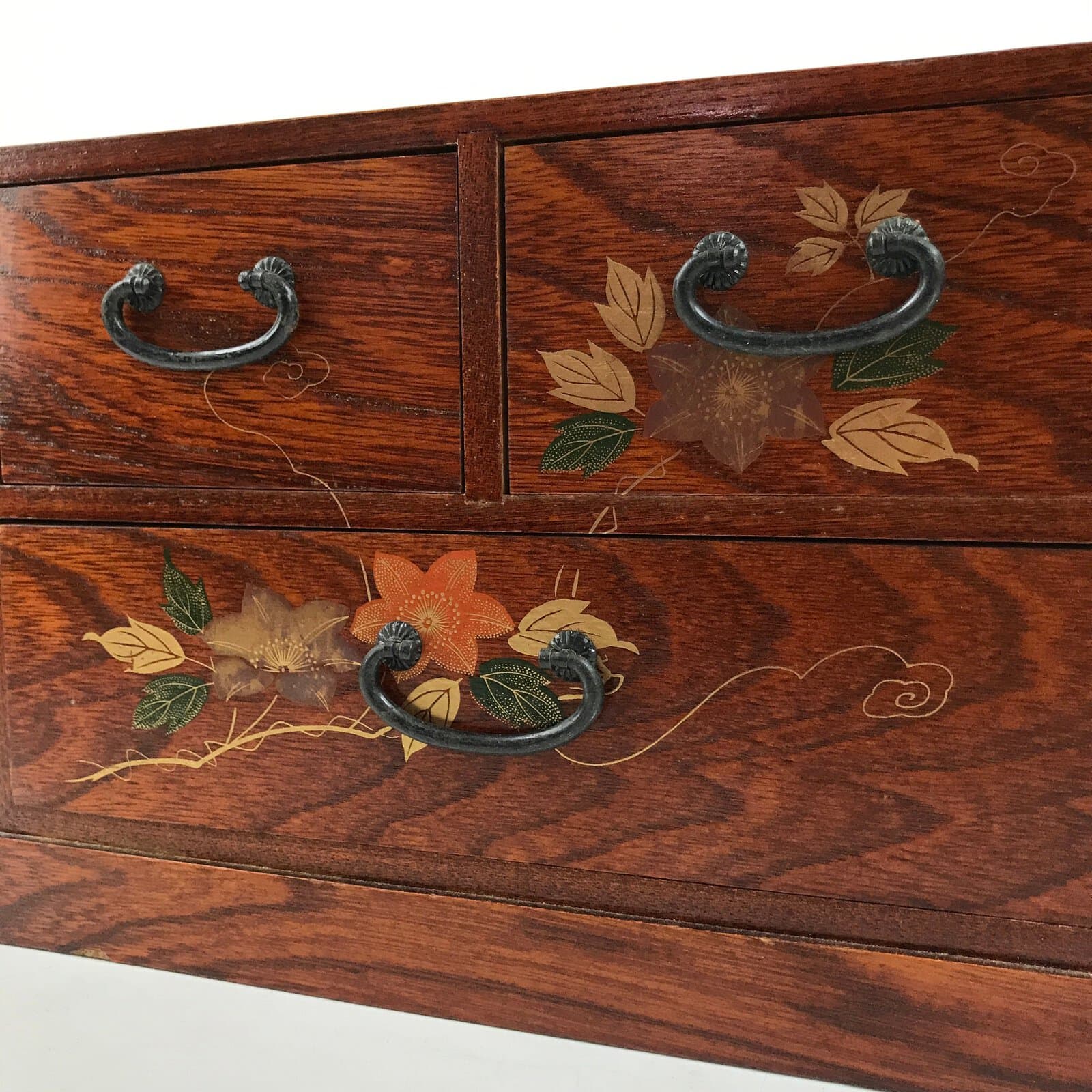 January 23, 2026Japanese Wooden Tansu Storage Chest Vtg Haribako Makie Floral 3 Drawers T381