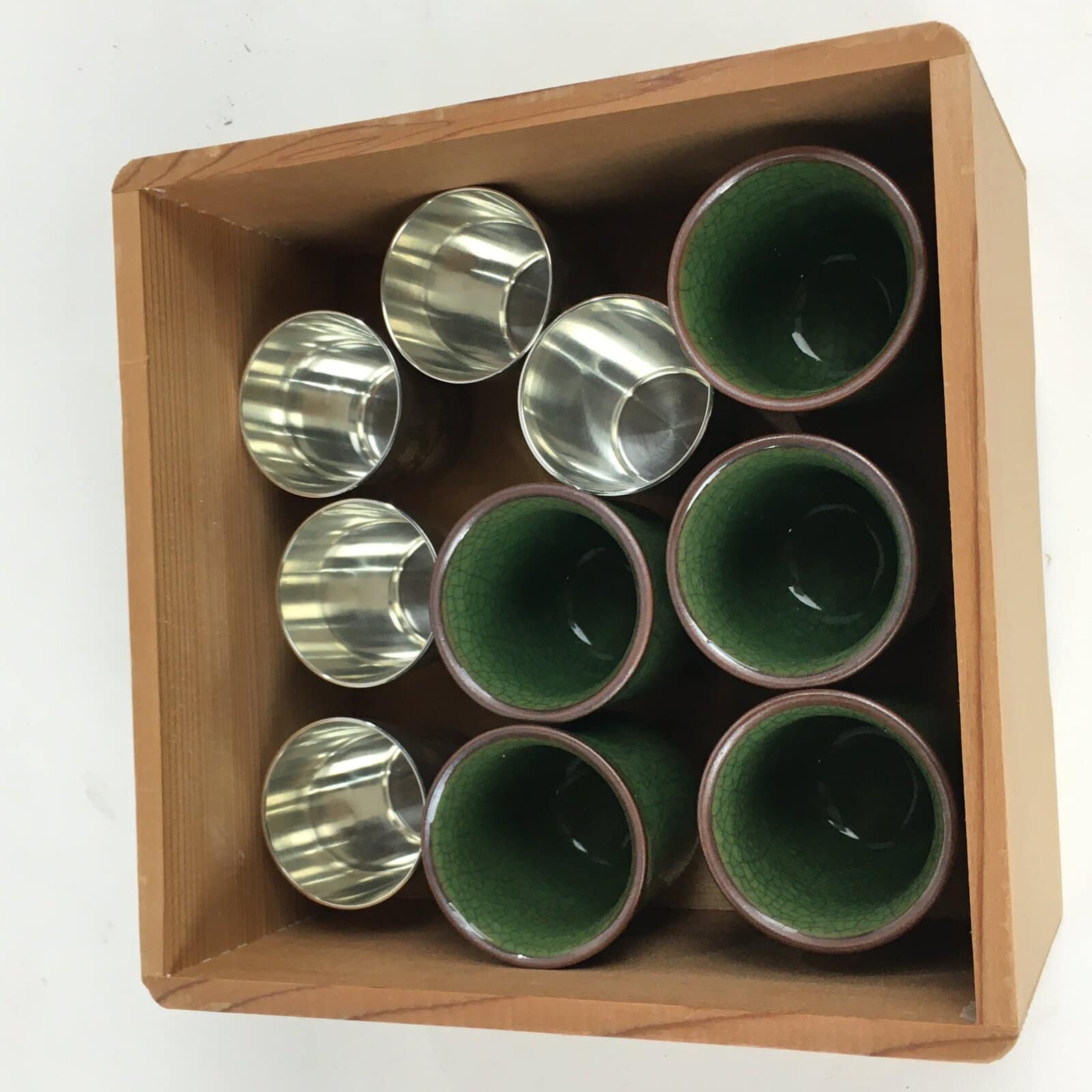 - Tin sake cup 5pc and Seizan kiln green sake cup 5 pc set