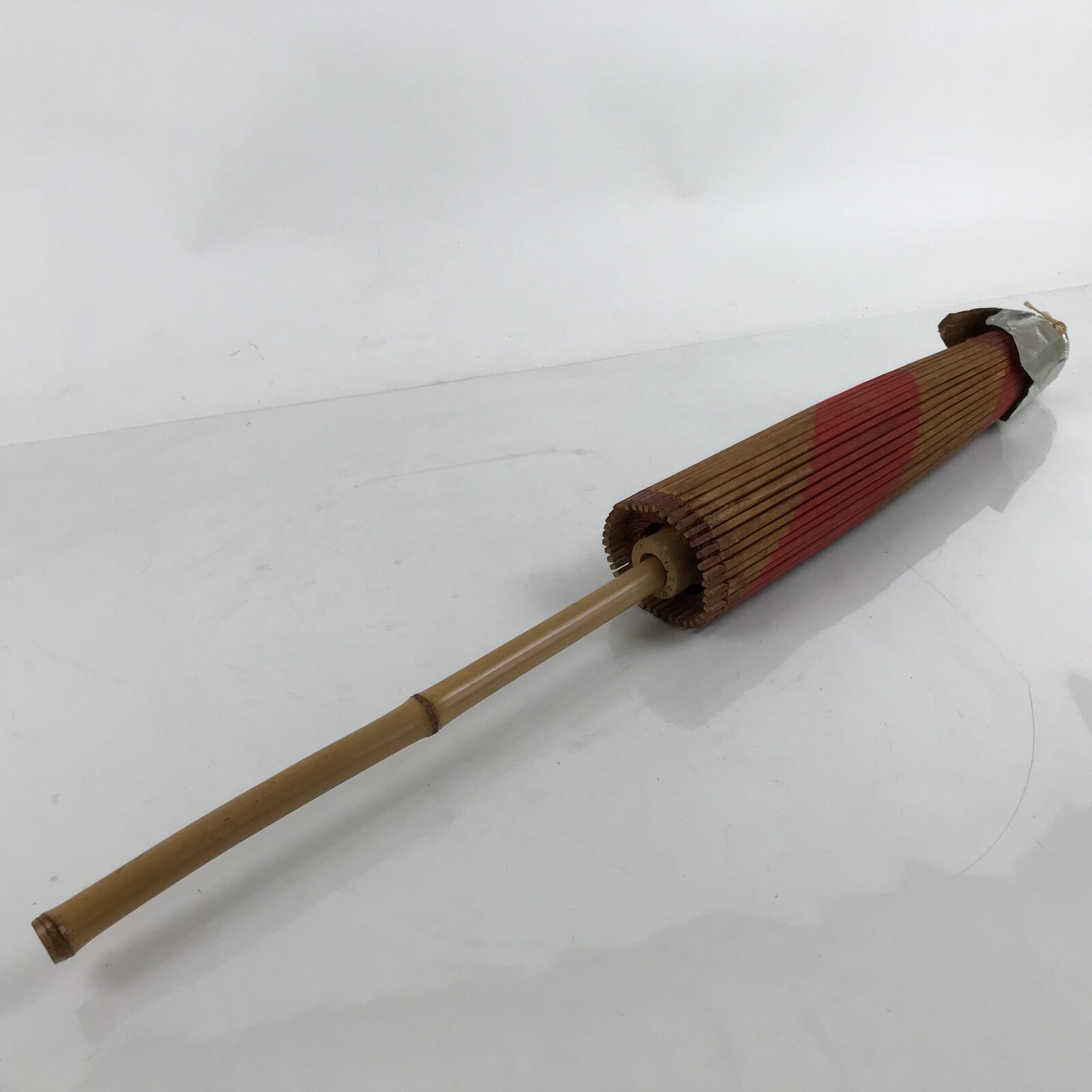 Japanese Bamboo Umbrella Parasol Vtg Wagasa Maigasa Geisha Paper Spiral JK775