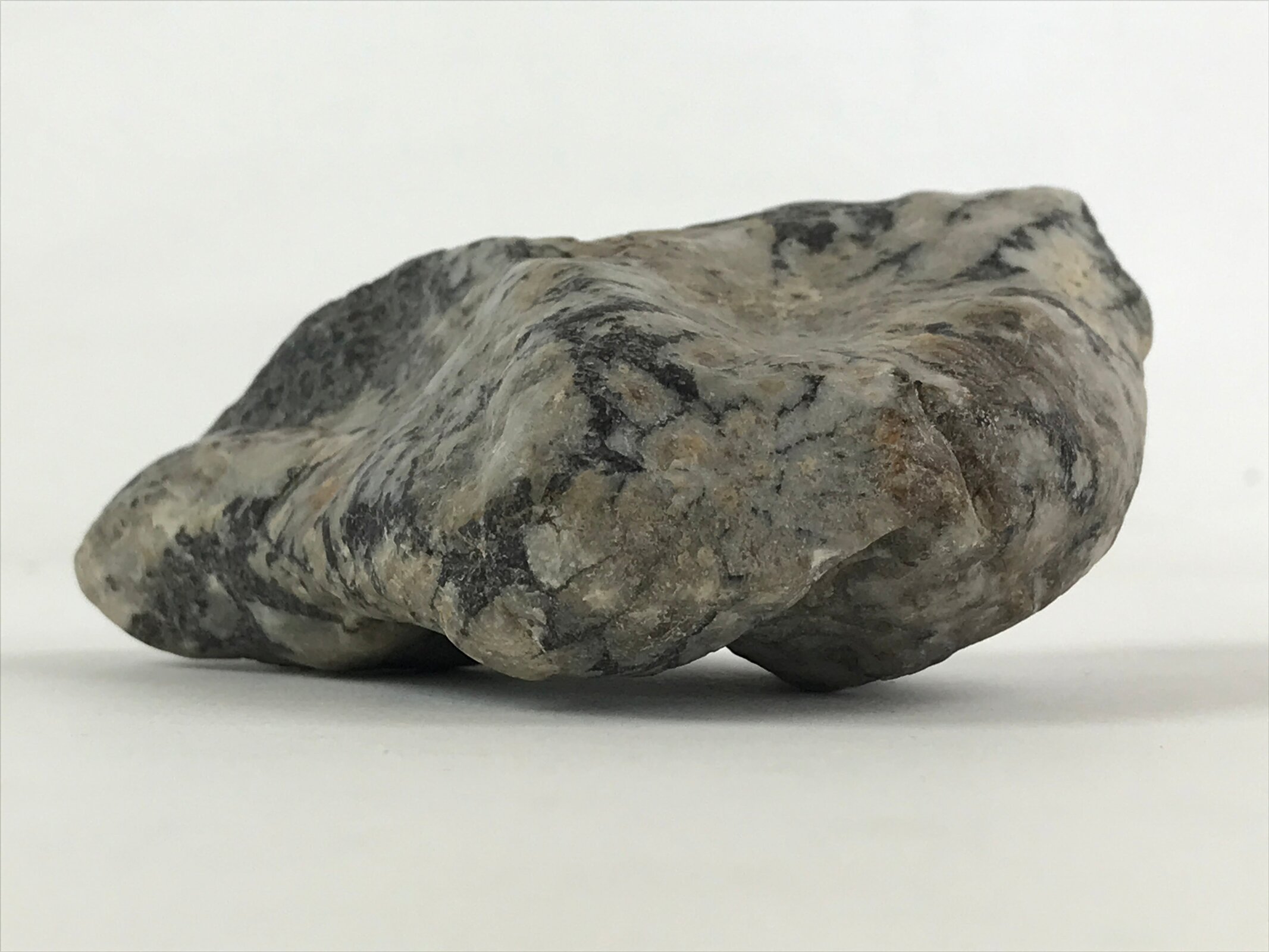 This item is a Japanese viewing stone, also called Suiseki. This stone has a flat base which makes it easy to display. In traditional Japanese culture, Suiseki are small rocks appreciated for their aesthetics and decorative values.