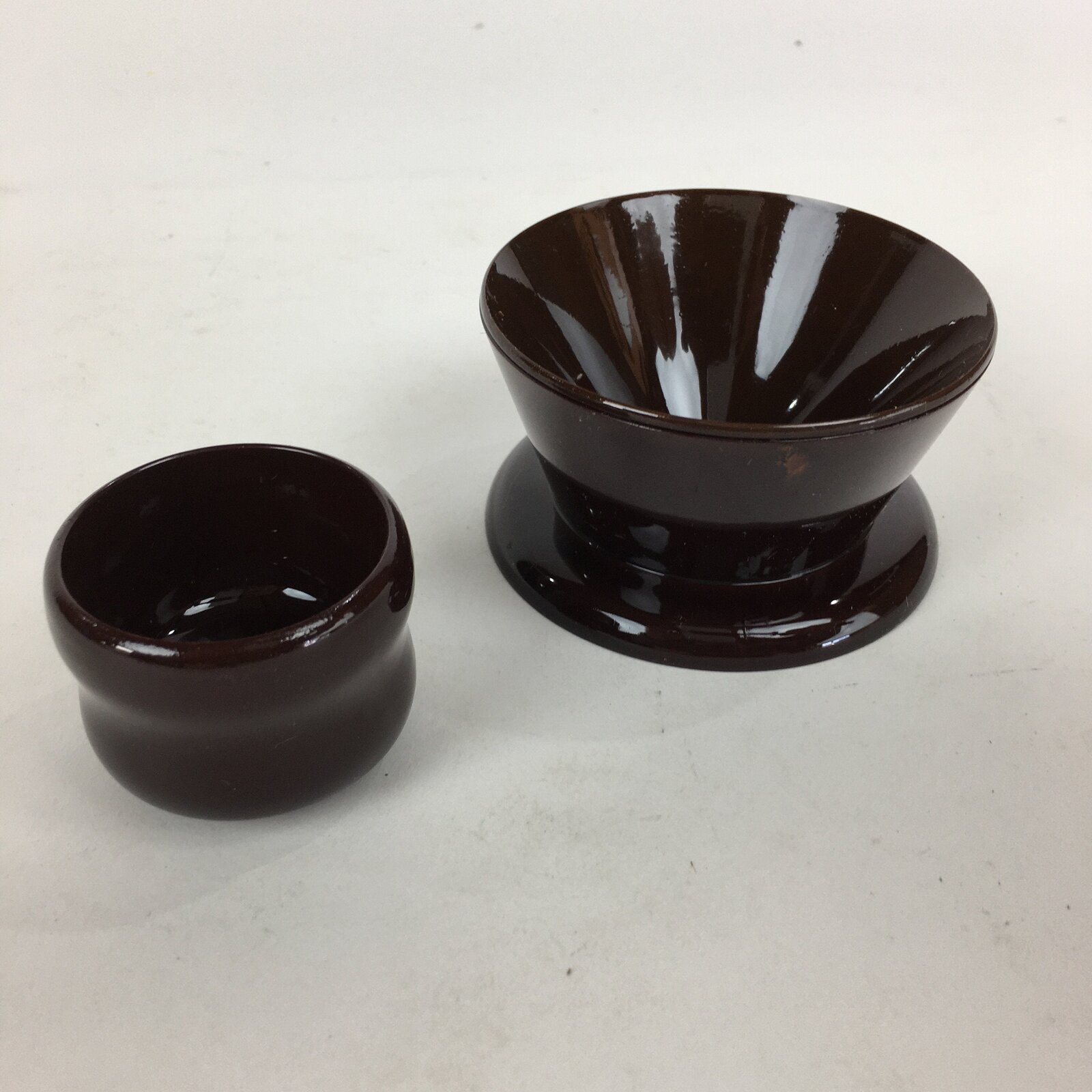 Japanese Wooden Lacquerware Sake Cup 2pc Set Vtg Hollowed Natural Wood UR611