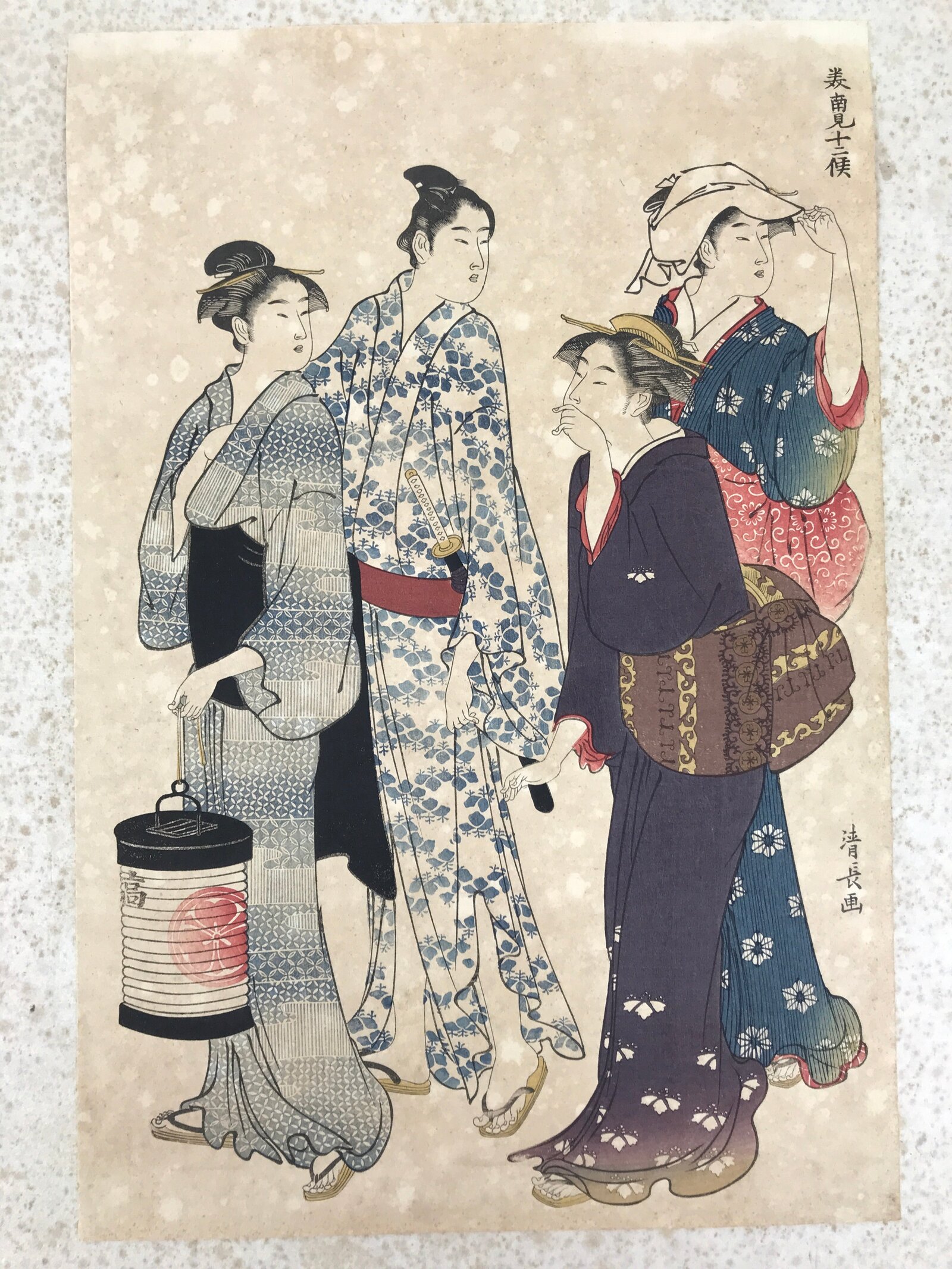 January 24, 2026Japanese Ukiyoe Women Walking Geisha Torii Kiyonaga Woodblock Print FL468