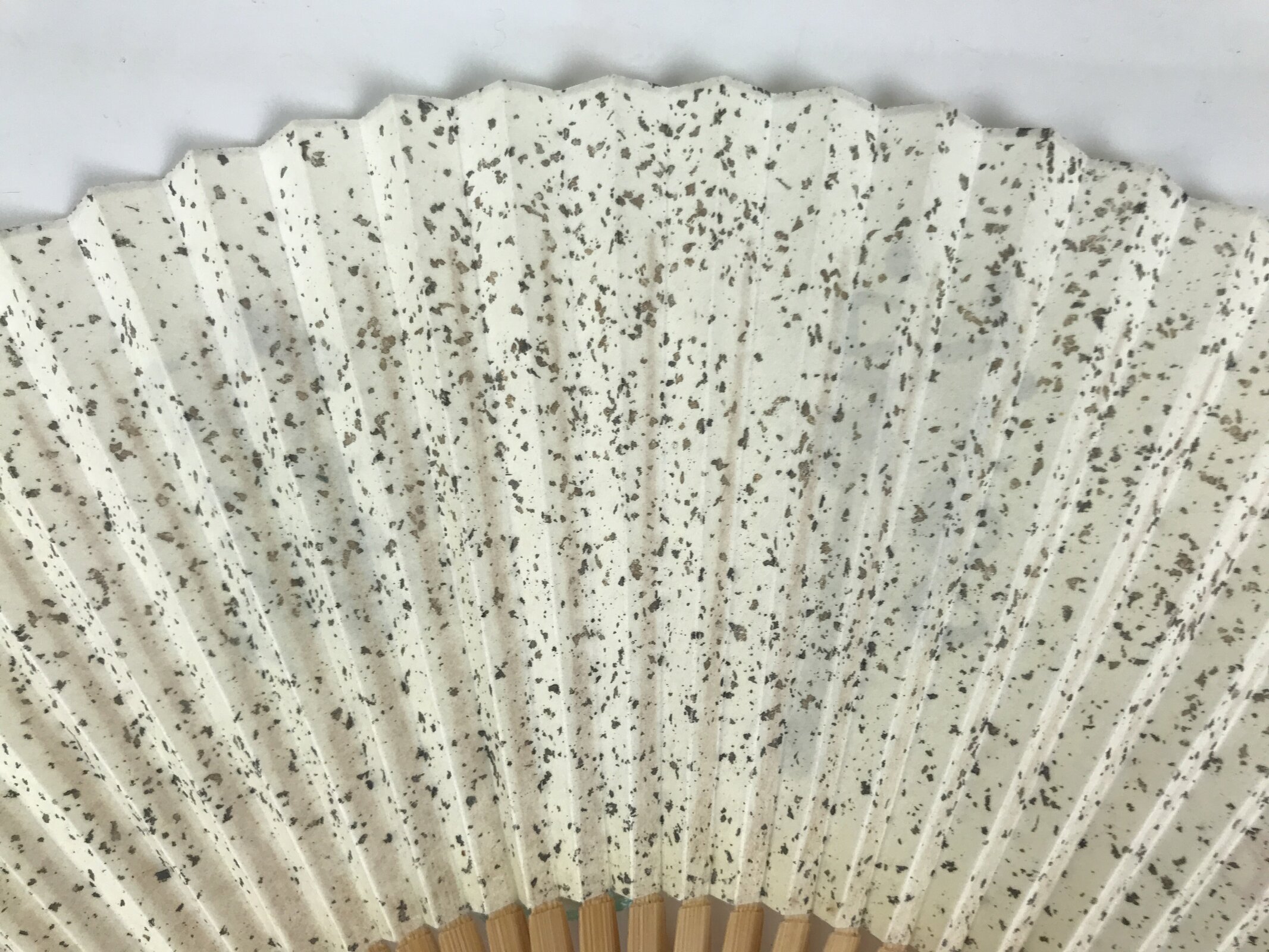 Japanese Washi Paper Folding Fan Sensu Vtg Gold Freckles Calligraphy Black 4D998