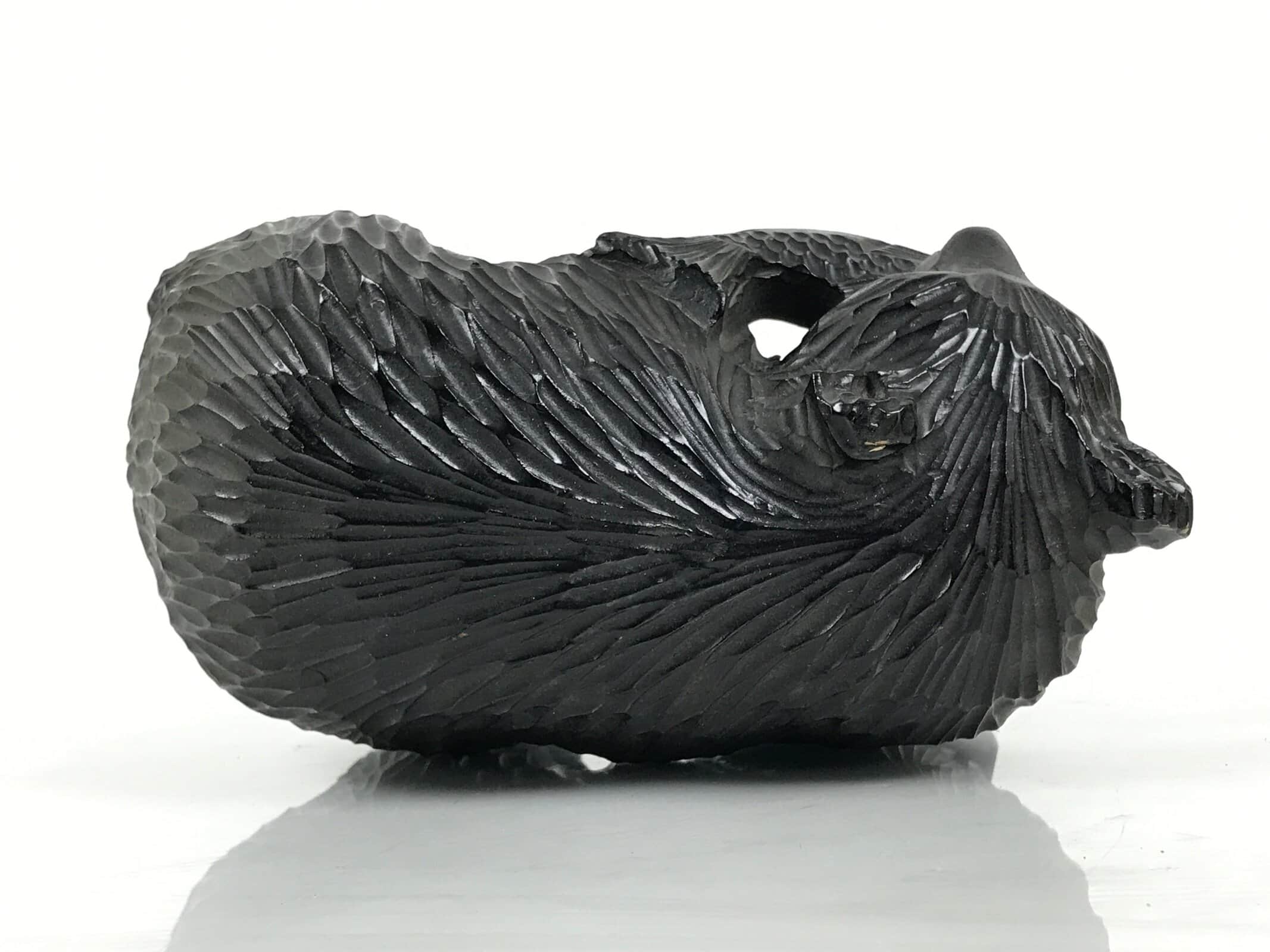 Famously from Hokkaido and northern Japan, this intricately hand-carved bear statue with a fish in its maw is a traditional Ainu folk handicraft.