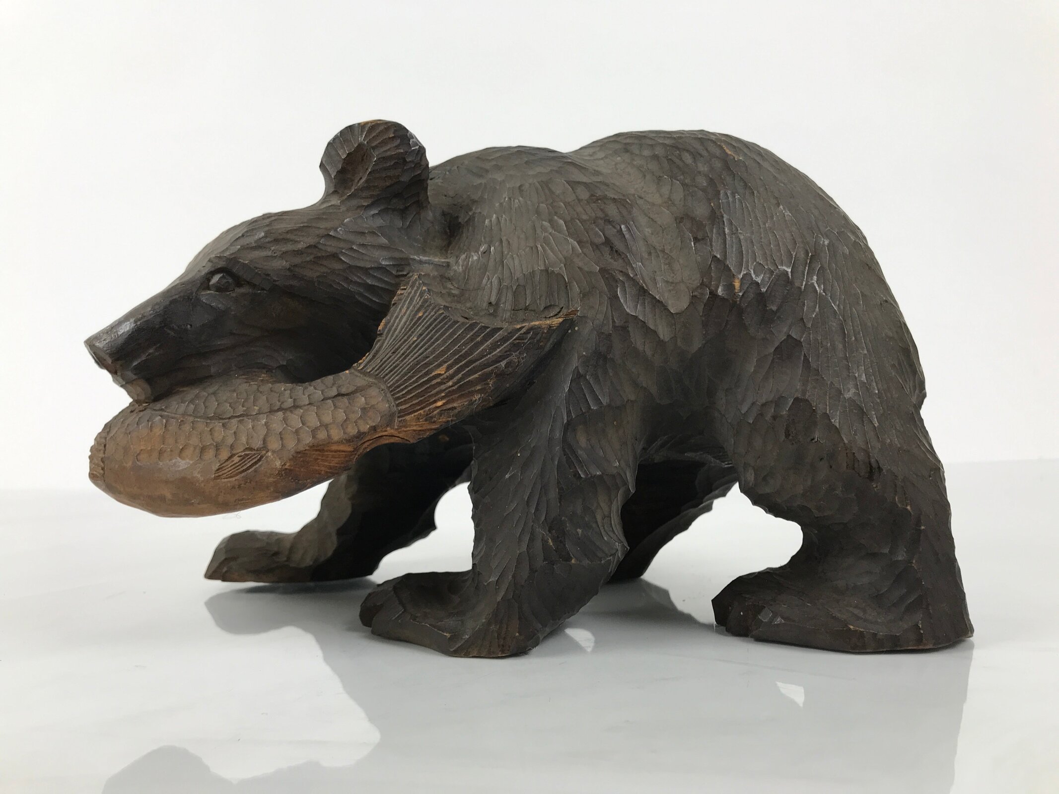 Famously from Hokkaido and northern Japan, this intricately hand-carved bear statue with a fish in its maw is a traditional Ainu folk handicraft.