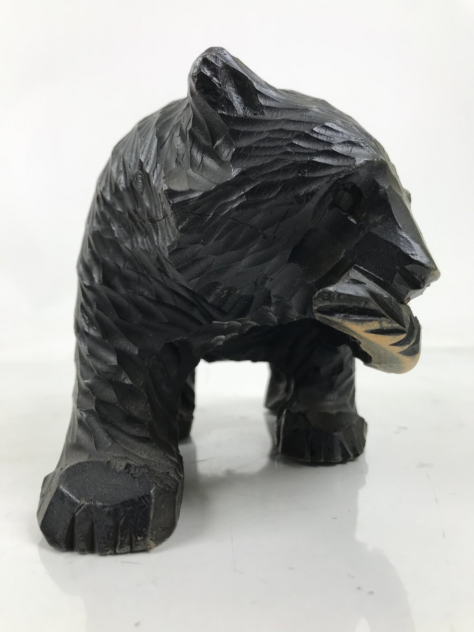 Famously from Hokkaido and northern Japan, this intricately hand-carved bear statue with a fish in its maw is a traditional Ainu folk handicraft.