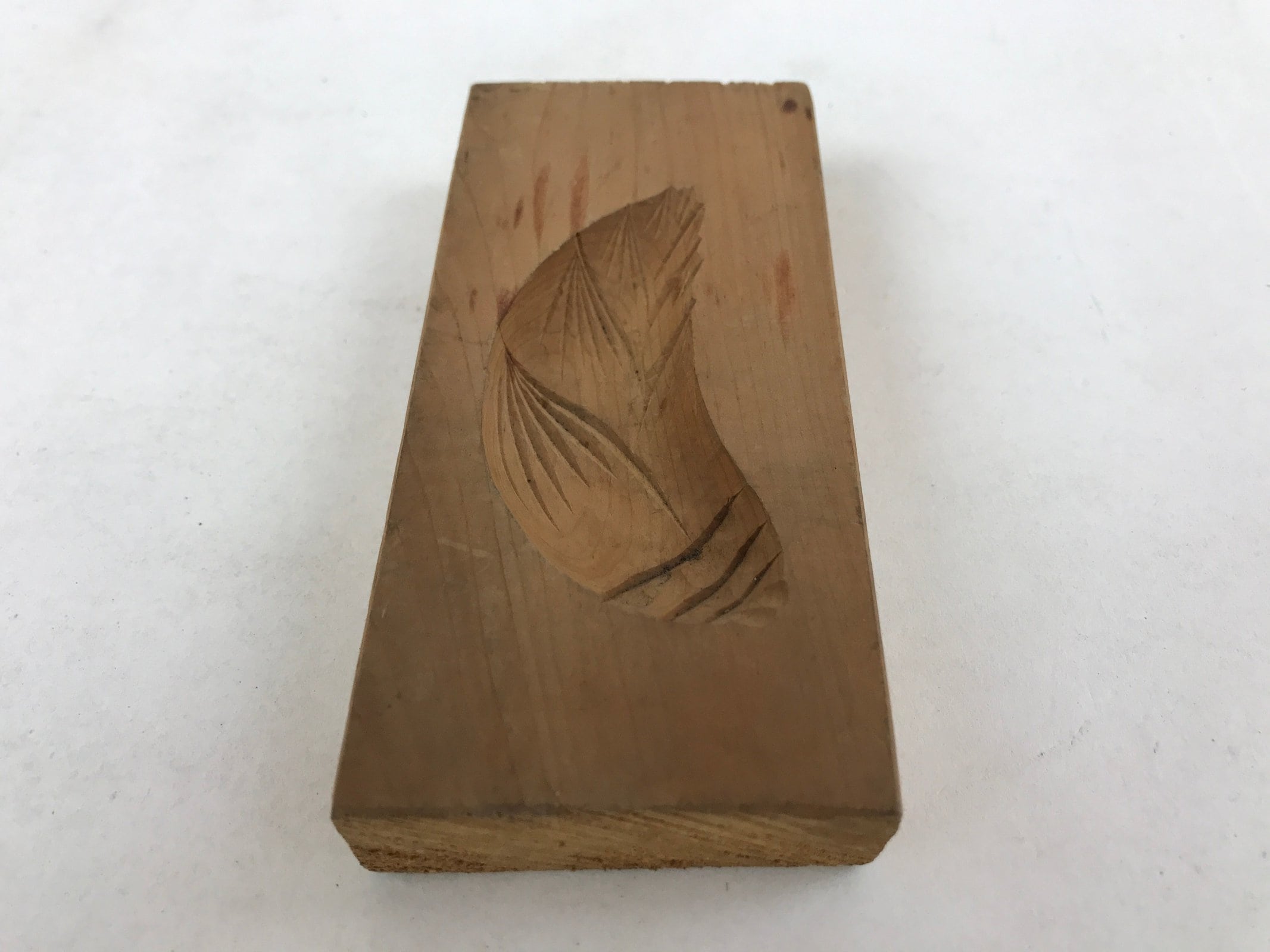 Japanese Wooden Carved Kashigata Cake Mold Vtg Sweet Wagashi Tachibina Kg515