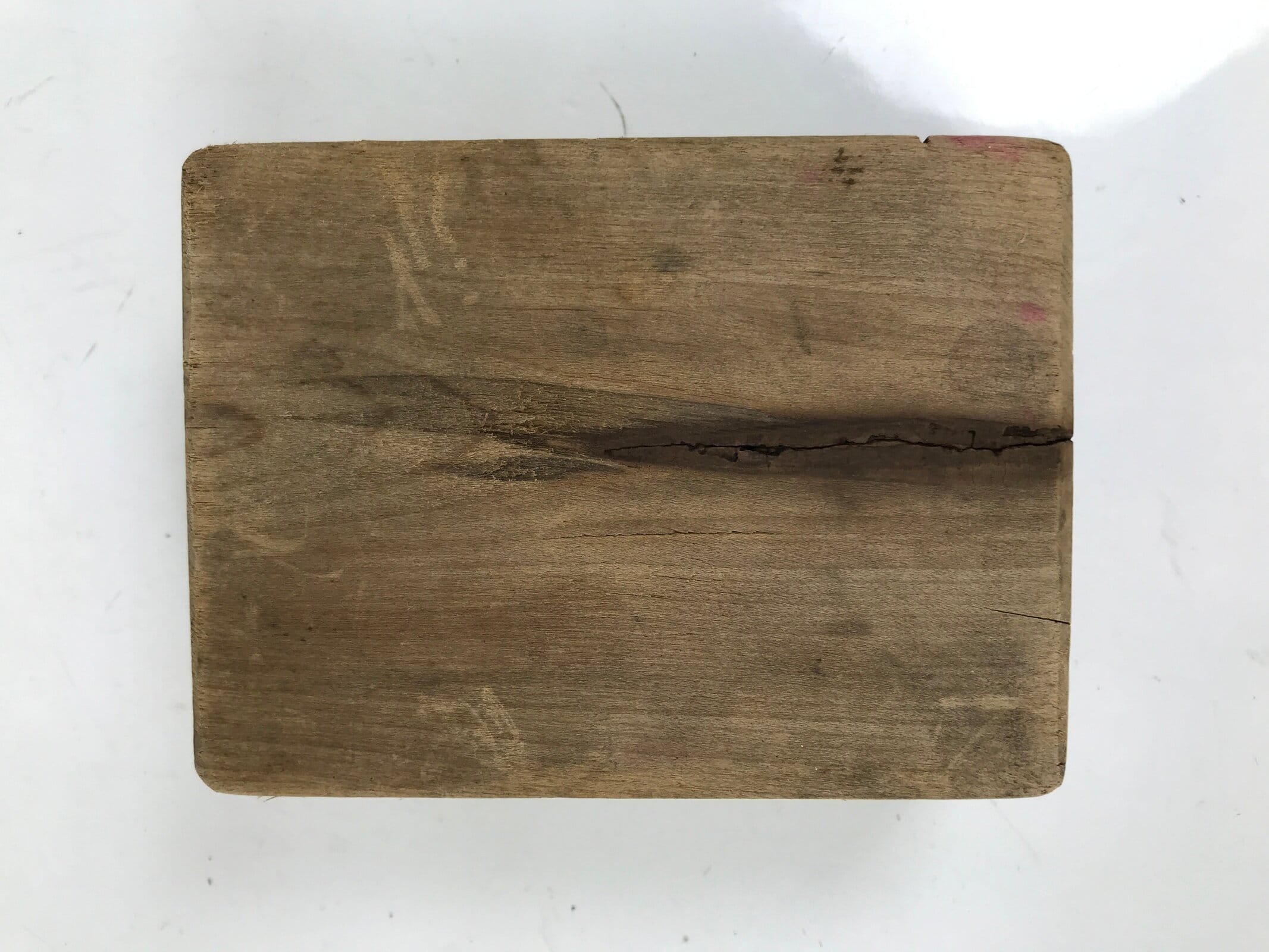- Good condition considering its age. Wood beginning to split through center line of bottom piece. Some discolorations. Wear and tear due to age. Please see the photos.
