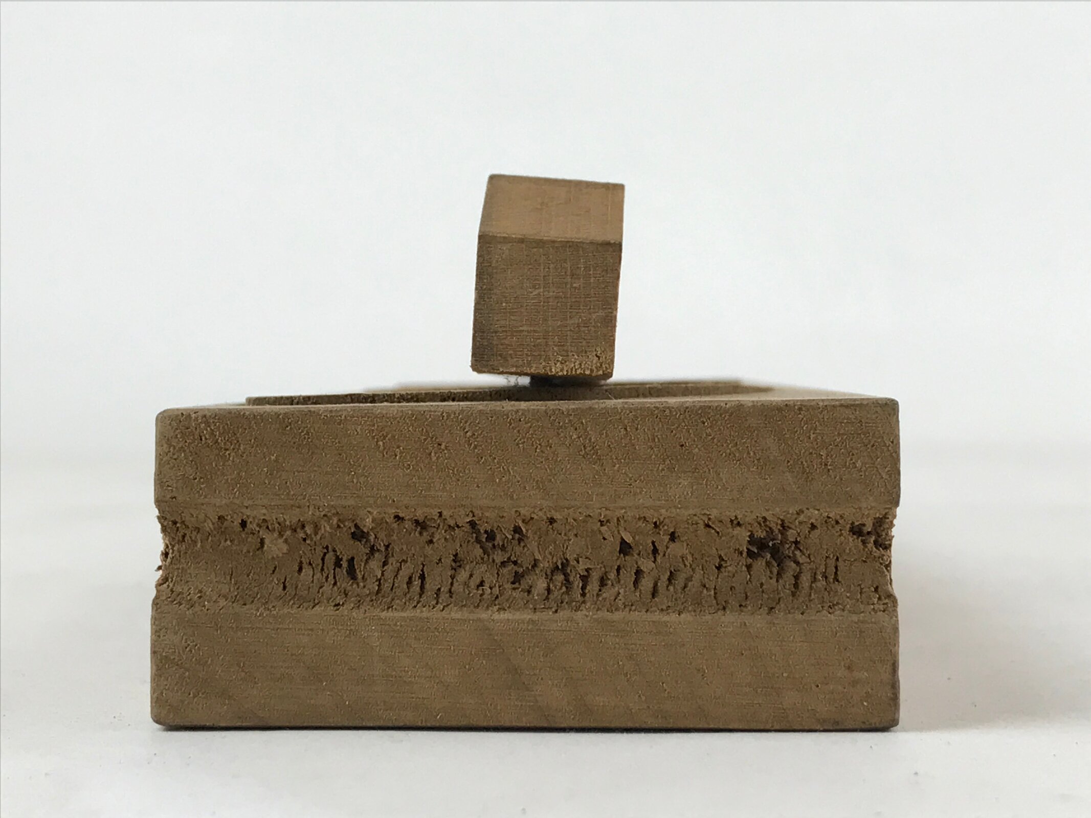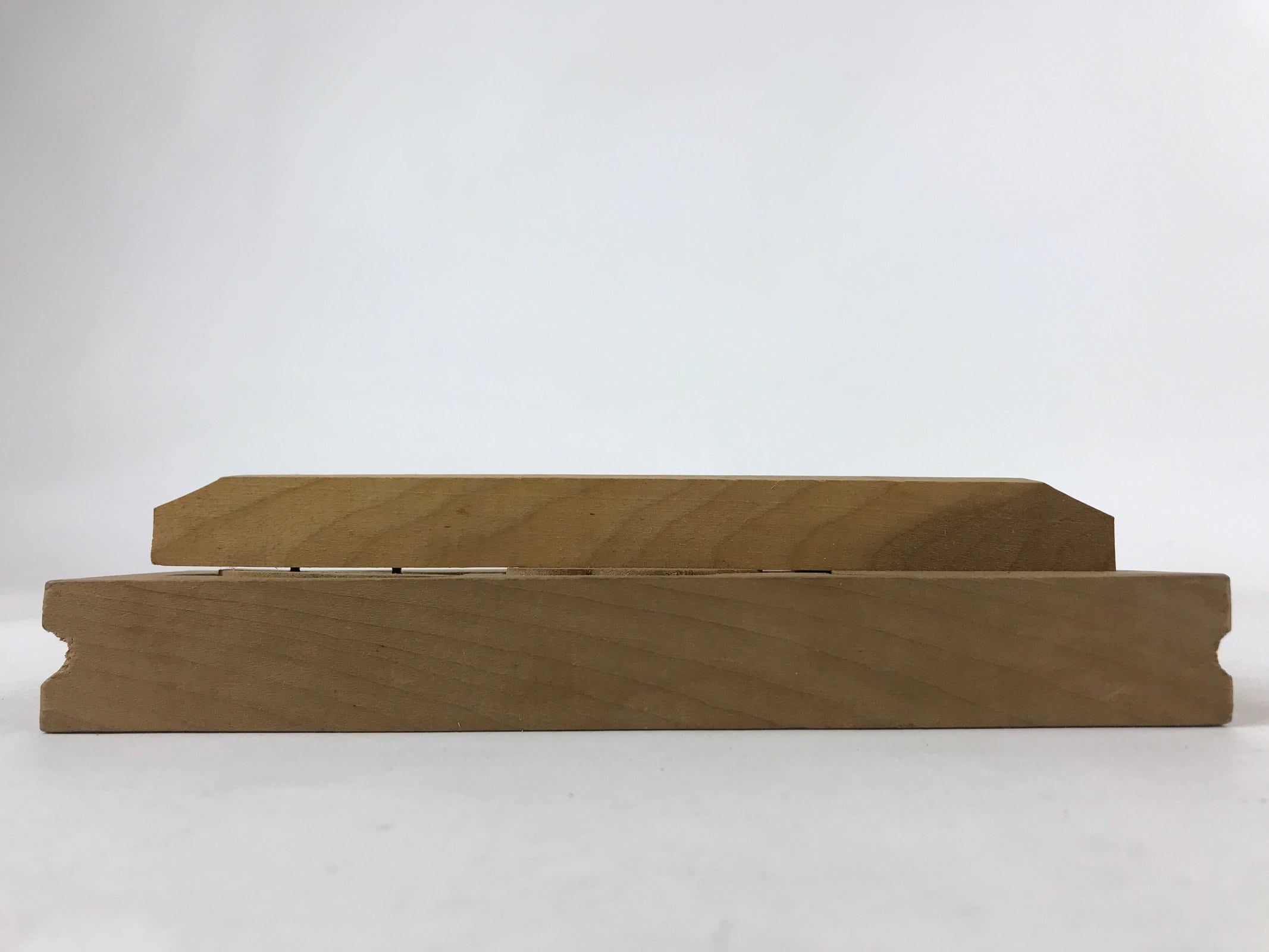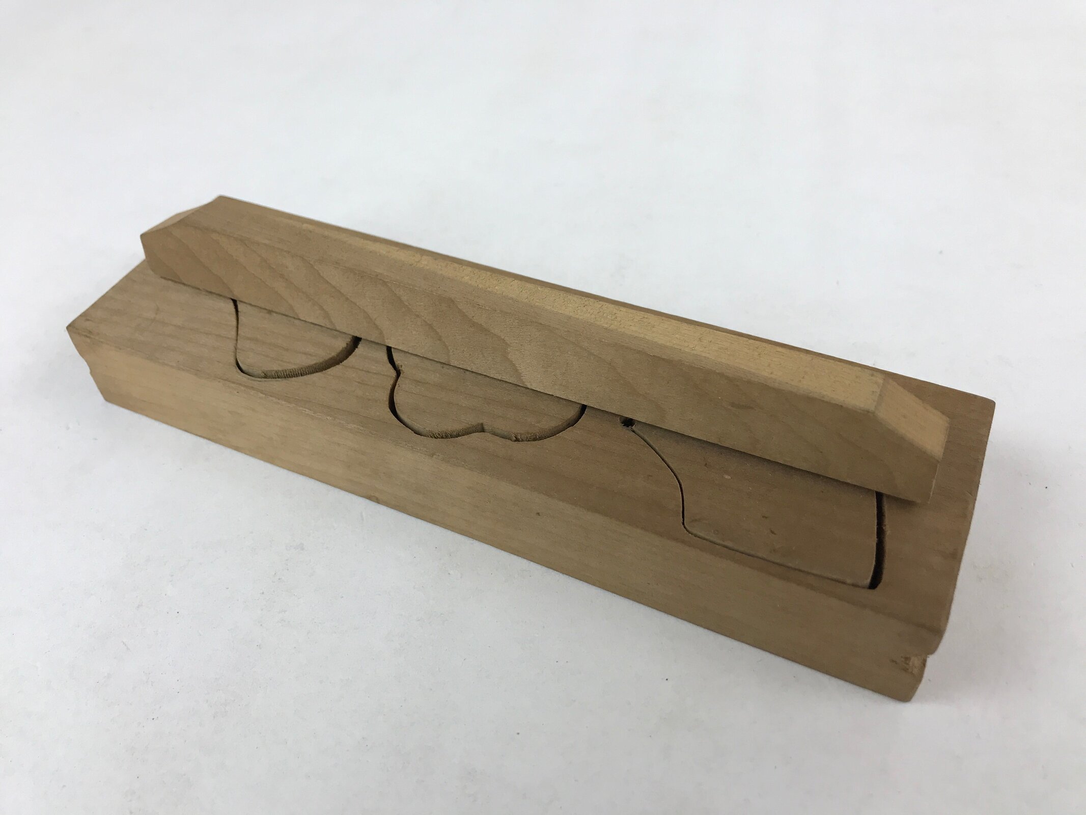 This two-panel kashigata mold is carved with three simple images of pine trees, plum blossoms, and a folding fan. This mold can be used to make sweets or as an eye-catching decorative item.