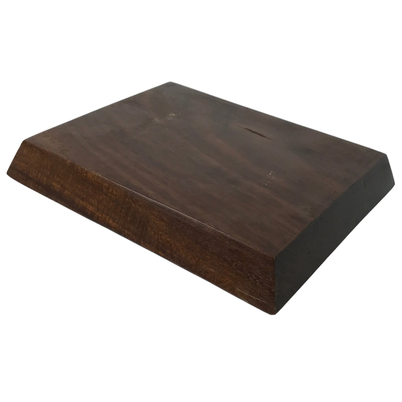 Used for the display of flower vases, ikebana arrangements, bonsai, and more, this classic, simple, platform-shaped kadai is handcrafted from a piece of solid wood. It is stained a rich dark brown with a clear brushed lacquer coating. The stand has angled sides, creating an elevated look.