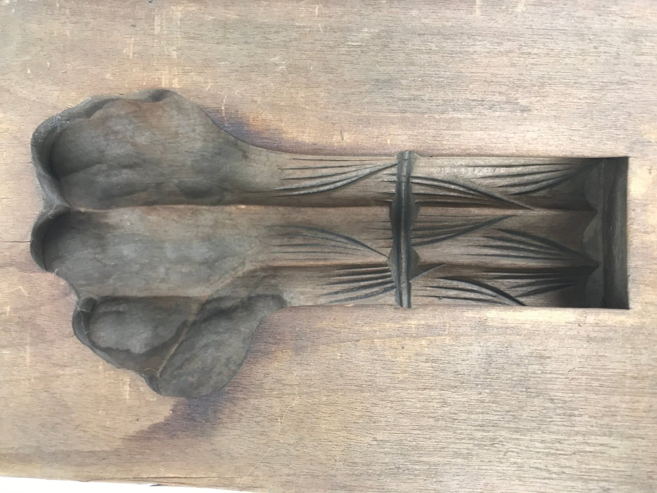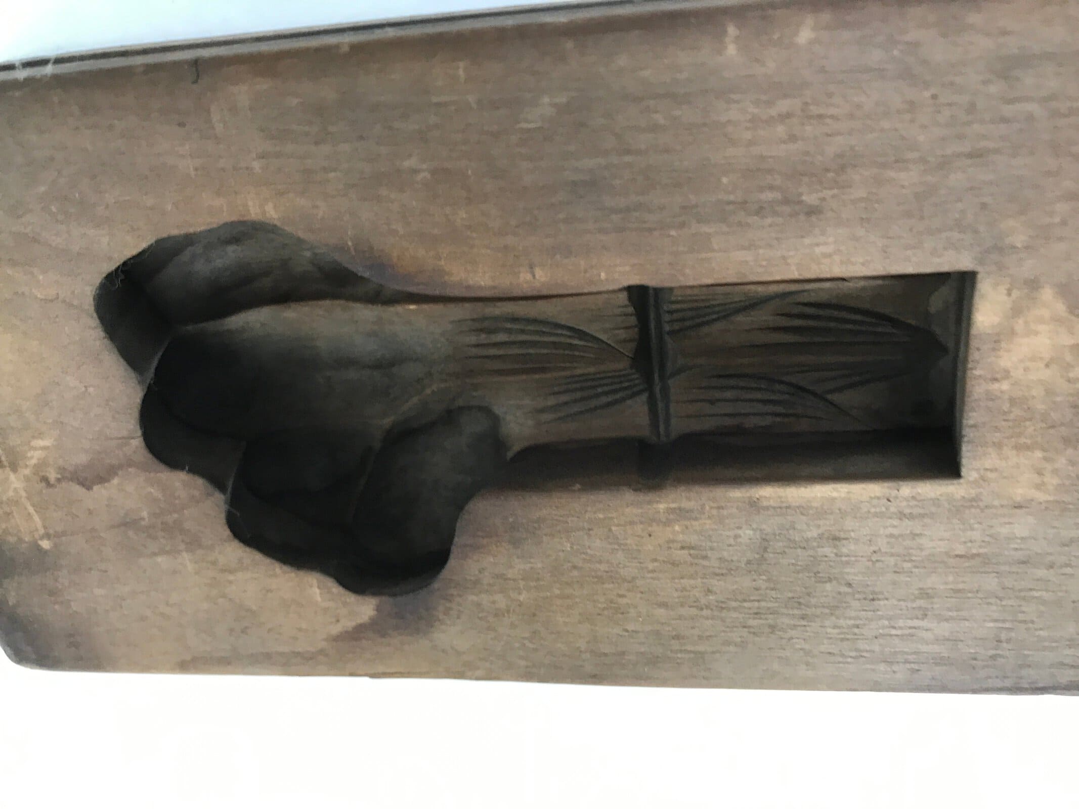 Japanese Wood Carved Kashigata Cake Mold Vtg Sweet Wagashi Warabi Fern Kg596