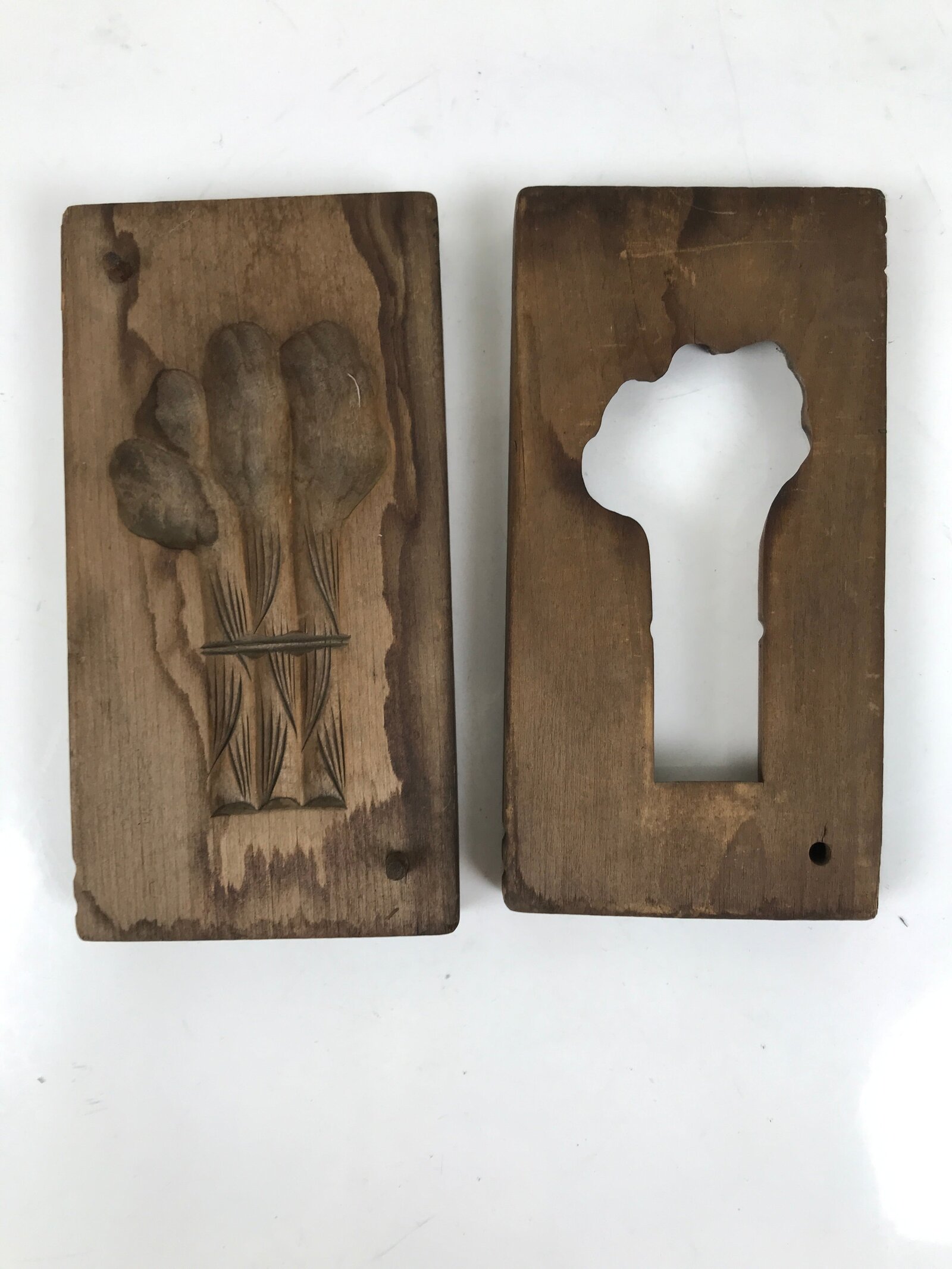 This two-panel kashigata mold is carved with the design of a bundle of ginger root (shouga) with stems. This mold can be used to make sweets or as an eye-catching decorative item.