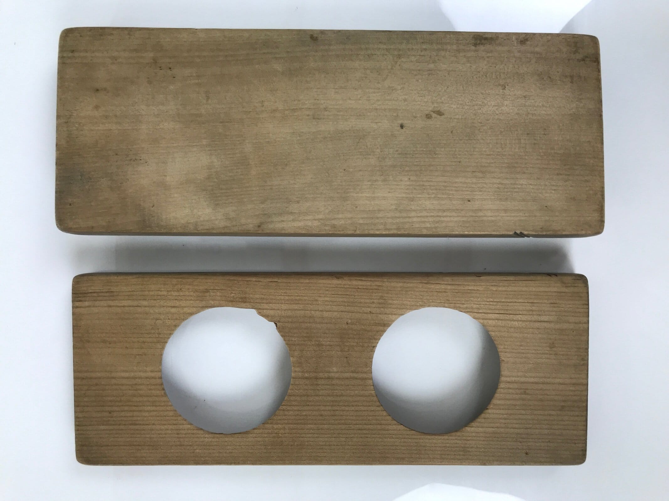 This two-panel kashigata mold is carved with the design of two top sections of apples. This mold can be used to make sweets or as an eye-catching decorative item.