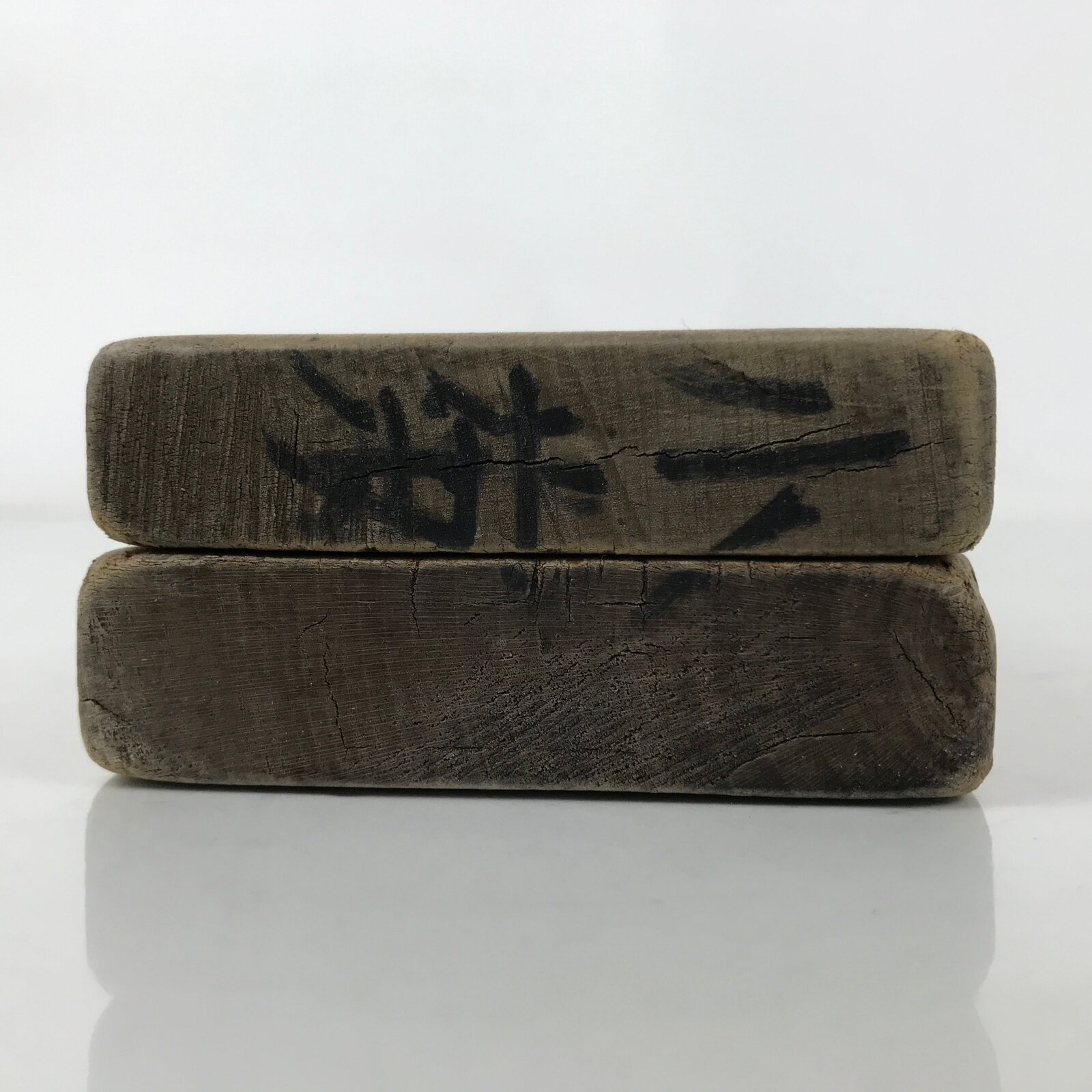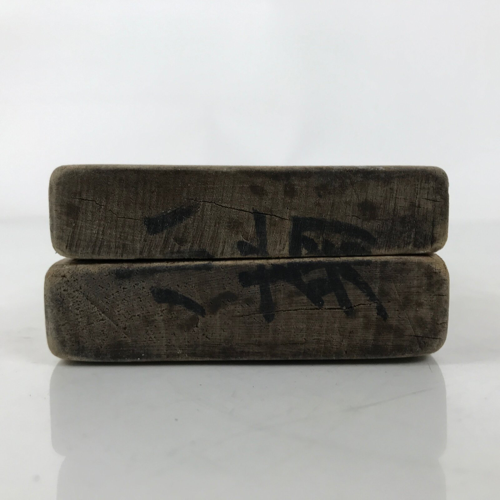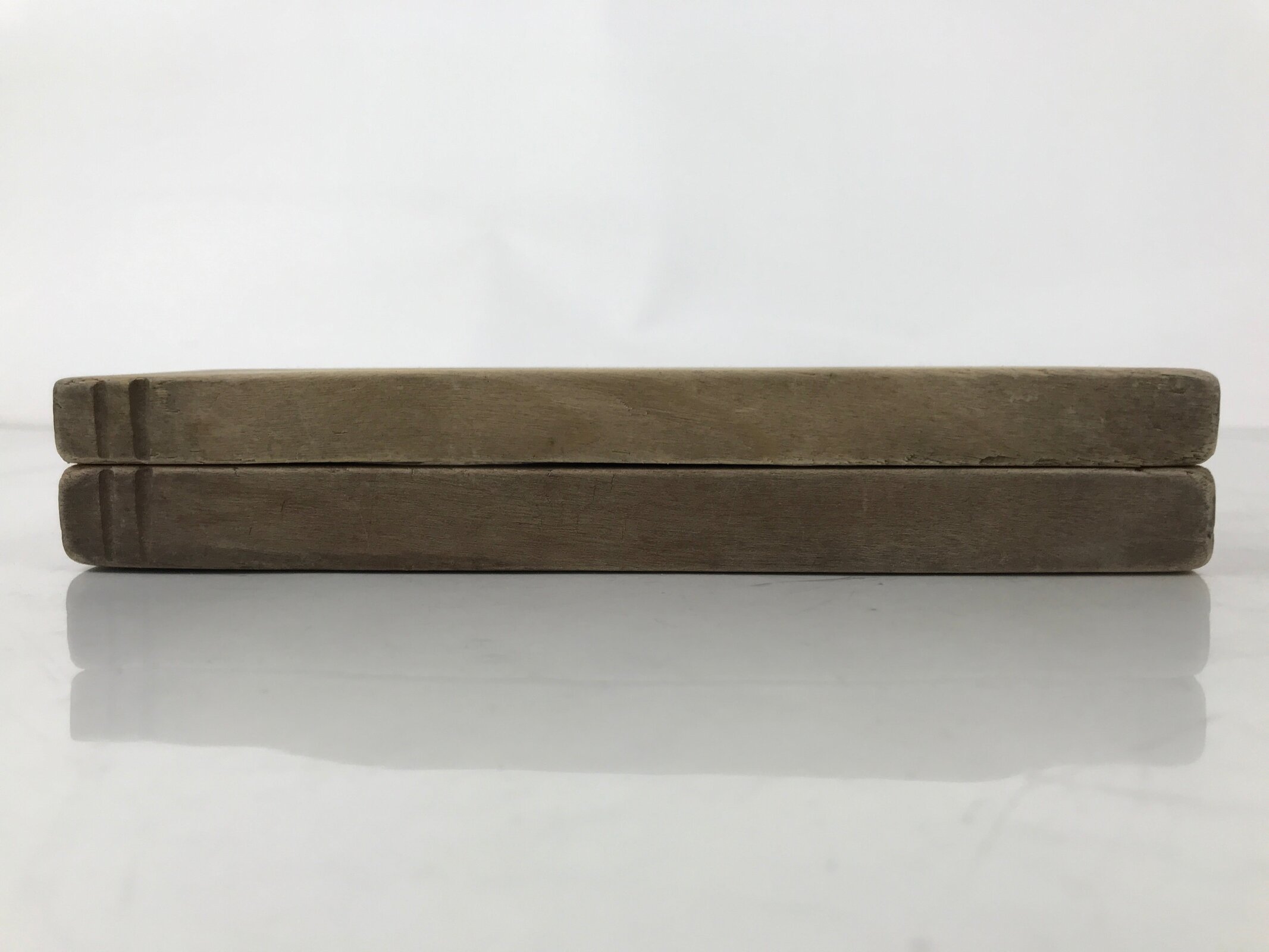 This two-panel kashigata mold is carved with the design of two chrysanthemums (kiku). Not only is the chrysanthemum a symbol of the Japanese Imperial family, but it represents longevity and rejuvination. This mold can be used to make sweets or as an eye-catching decorative item.