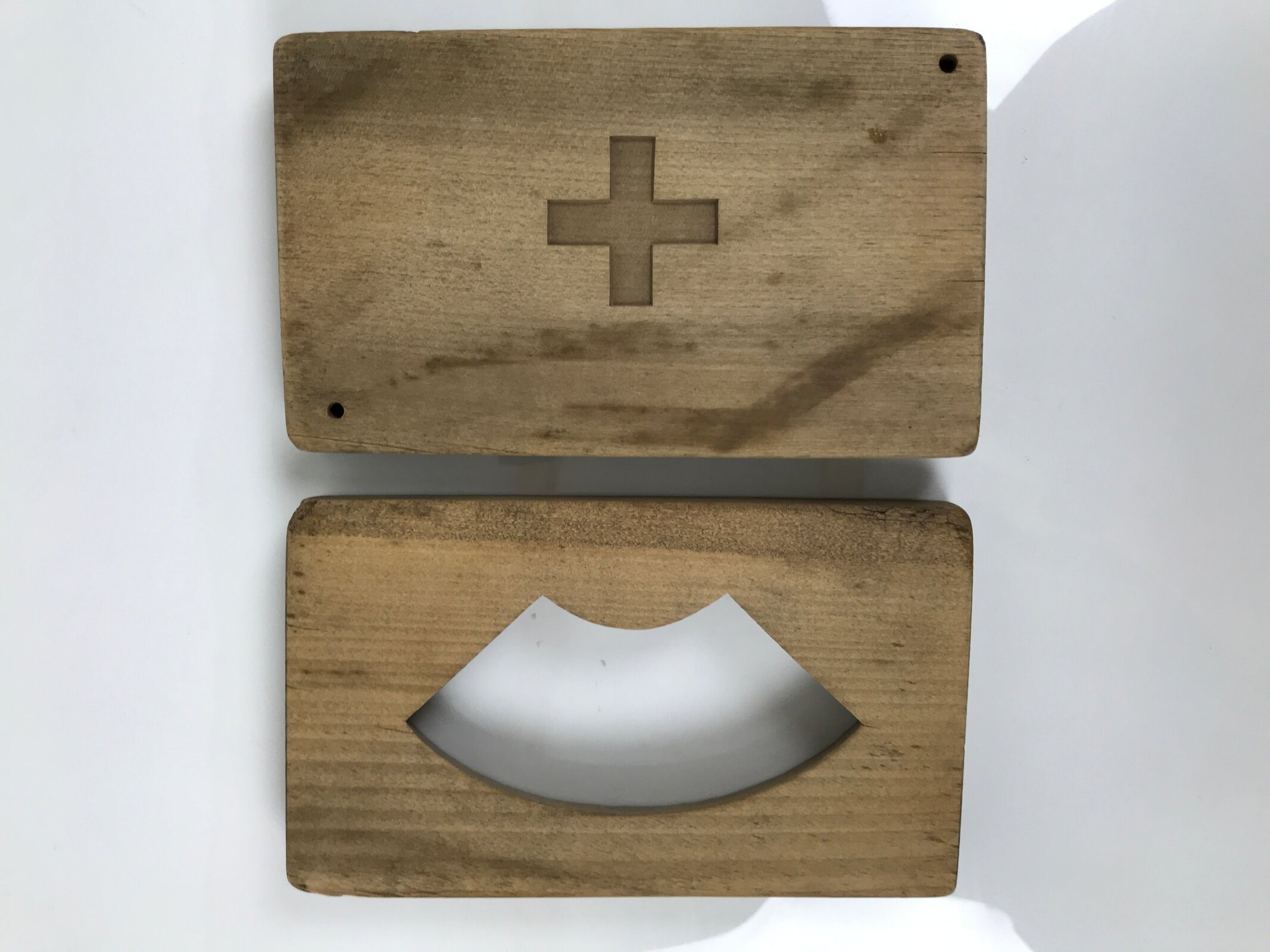 - Good condition considering its age. Some discolorations and marks. Edges worn. Fine cracks in top panel (does not affect design). Wear and tear due to age. Please see the photos.