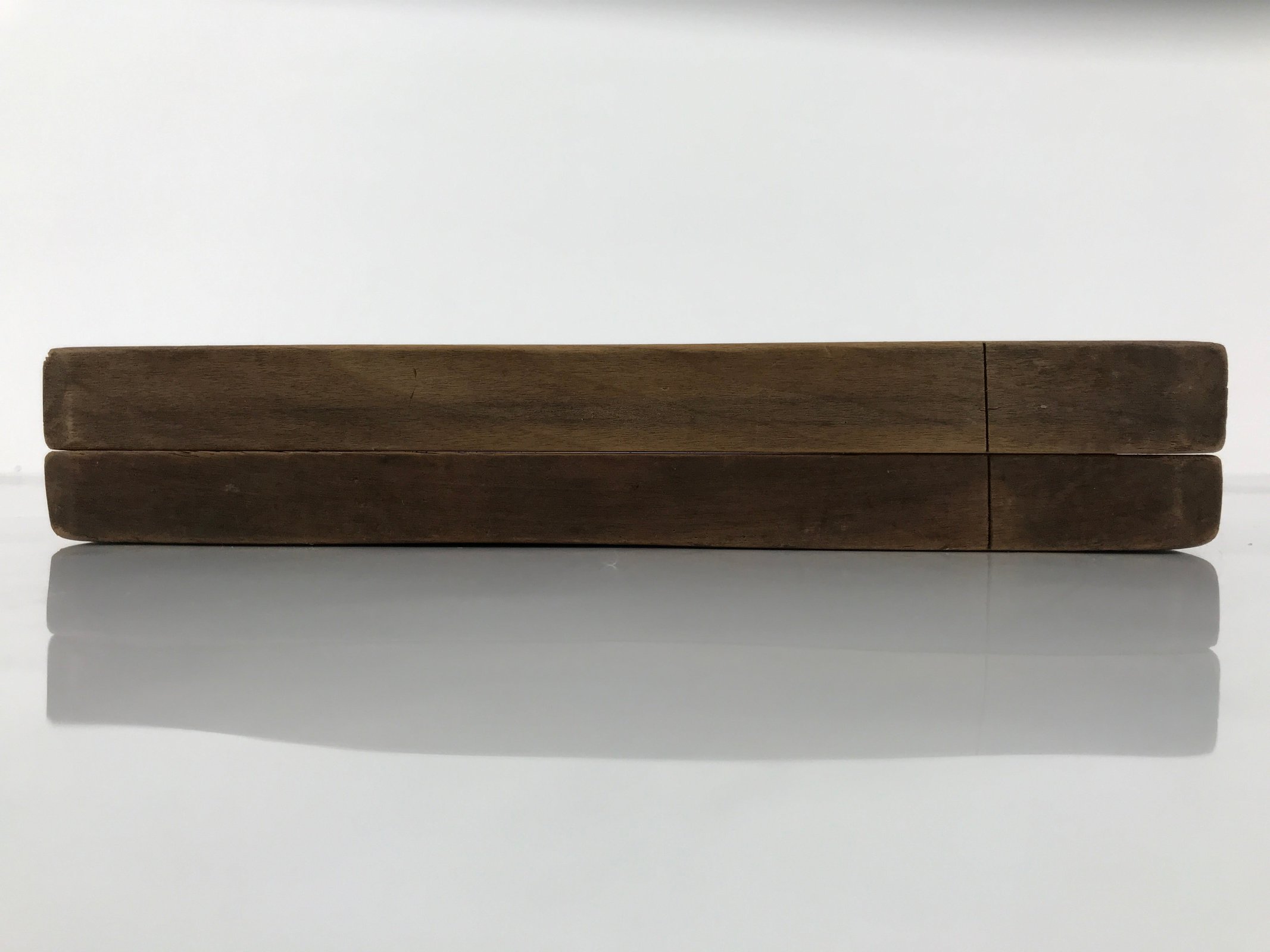 This two-panel kashigata mold is carved with the design of two heavenly beings called tennin. This motif is often carved into Buddhist temple architecture (as well as home altars called butsudan). There is also a rectangular space where a smaller kanji kashigata can be inserted. This mold can be used to make sweets or as an eye-catching decorative item.