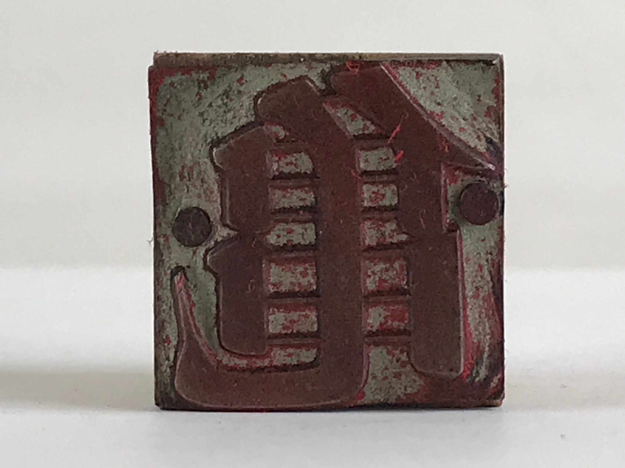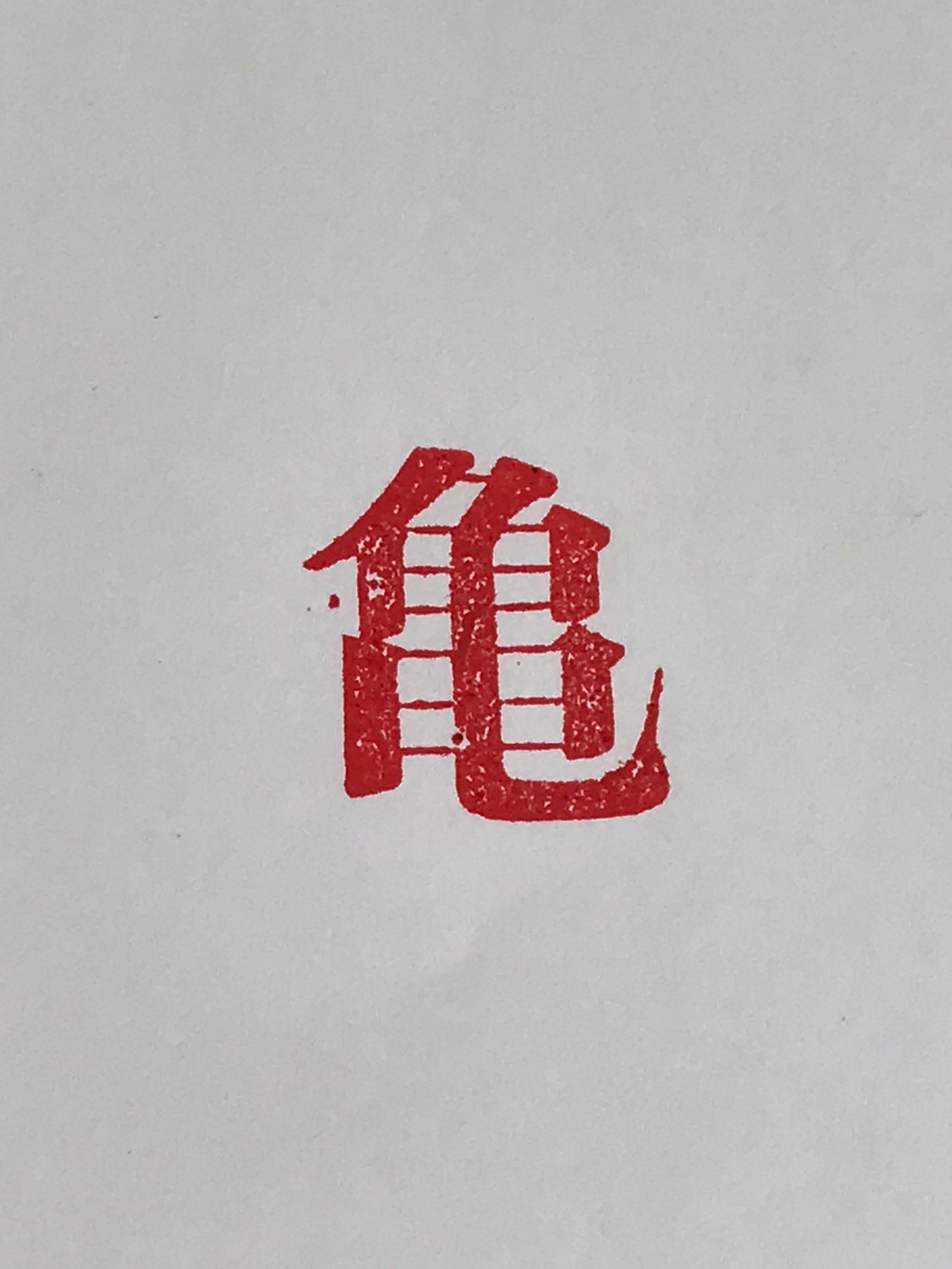 This is a vintage Japanese wood and metal seal for letterpress printing. This single kanji letter (Katsuji) is Kame (turtle). The letterpress printing technique is used to produce many copies of books, newspapers, etc.