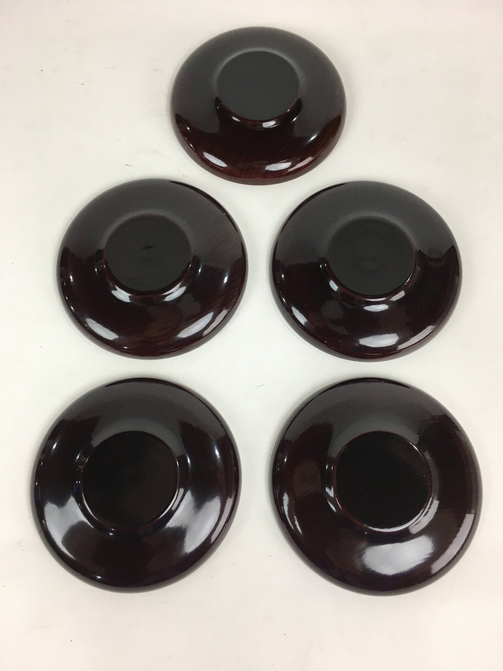 January 18, 2026Japanese Wood Lacquer Drink Saucer 5pc Set Vtg Chataku Coaster Reddish-brown UR5