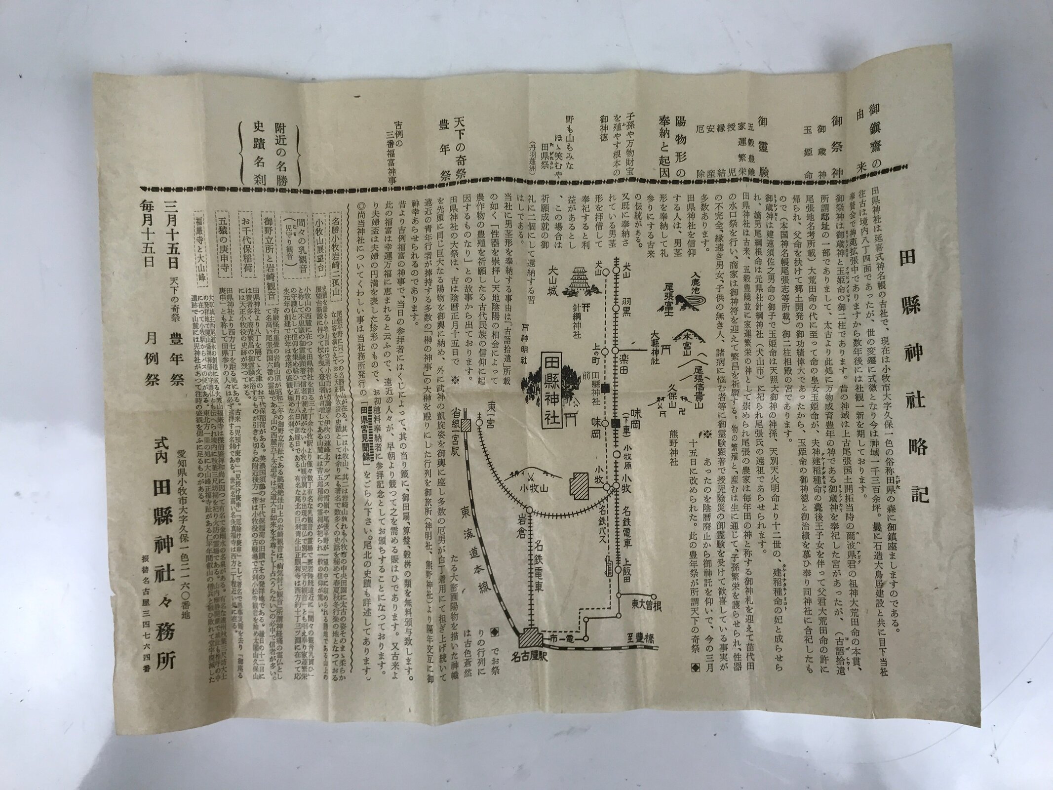 This is a vintage Japanese shrine amulet carved in a phallic shape. It is stained a medium wood brown, brushed with a clear lacquer coat, and wrapped in a white paper. This item is a talisman purchased from Tagata Shrine in Komaki, Aichi Prefecture. Every spring Tagata Shrine hosts a famous “penis” festival called Hounen Matsuri which celebrates fertility. It comes with the original paper box and a pamphlet describing the history of Tagata Shrine.