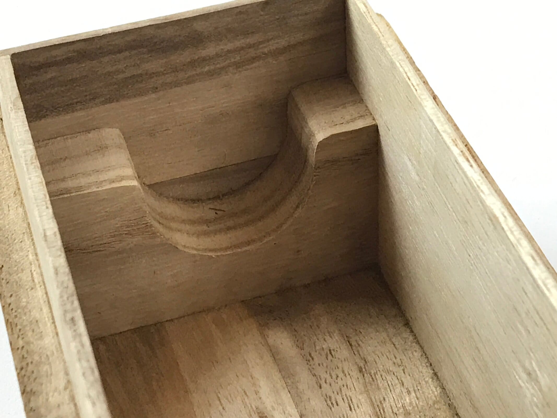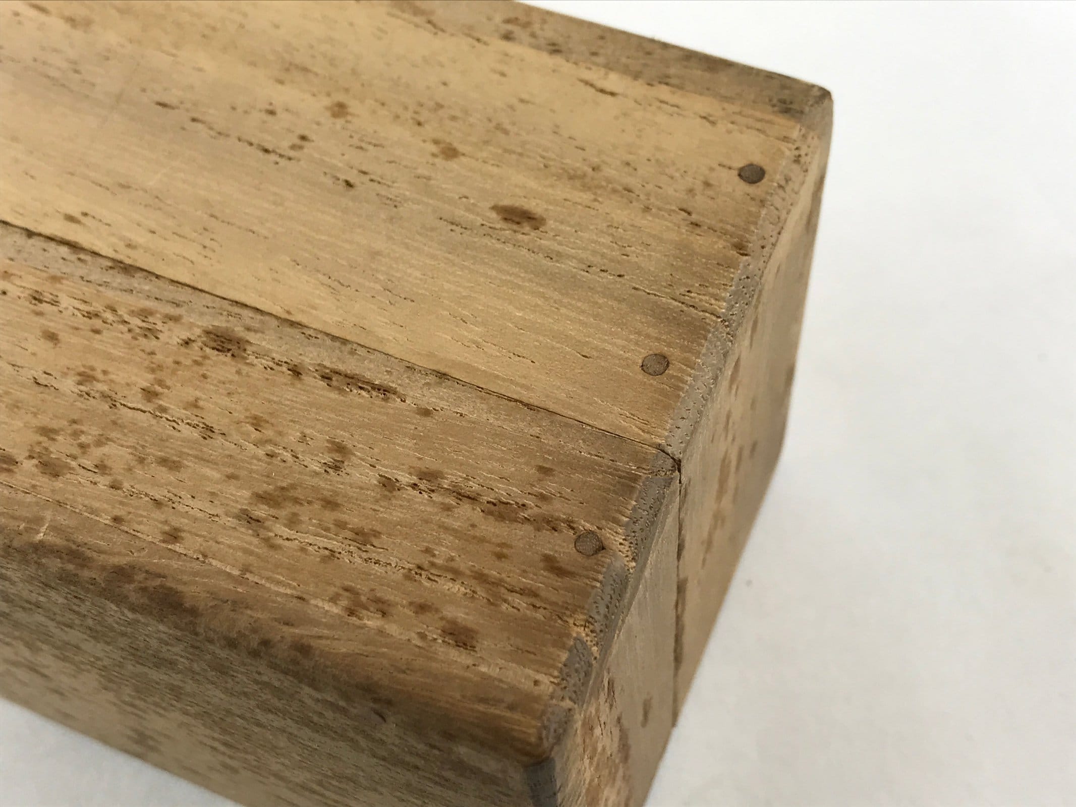 Hand-crafted and a natural light brown color, this sturdy wooden box is made to store a hanging scroll, or kakejiku. The lid fits flush with the rest of the box for a uniform look. Inside are two non-adjustable carved brackets meant to secure a scroll in place.