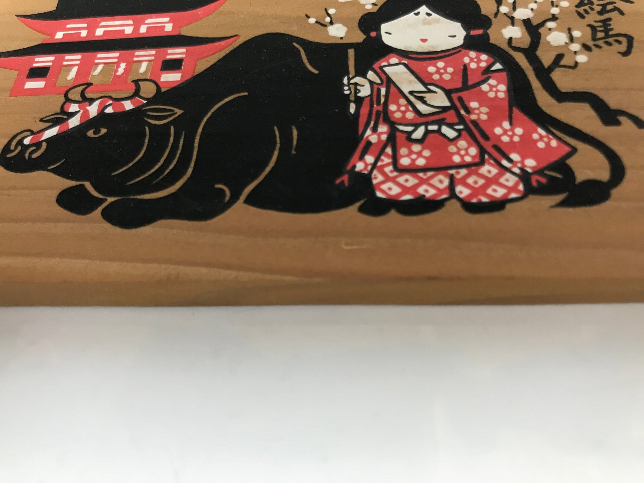 January 22, 2026Japanese Wood Shrine Plaque Ema Vtg Dazaifu Tenmangu Ox Plum Hanging Wish EM44