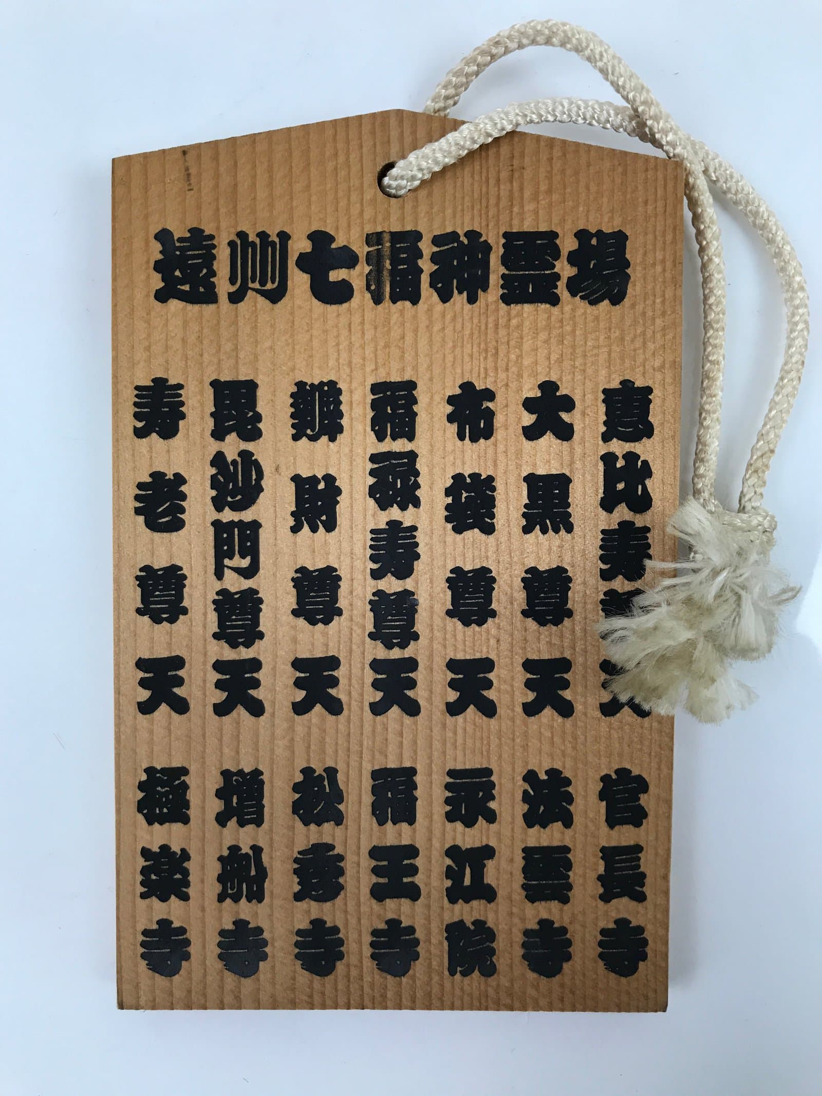 - Kanji on front: Sanpai kinen (token of visiting), Seven Lucky Gods.