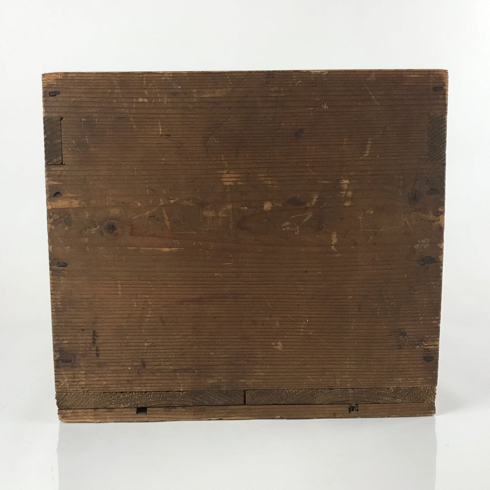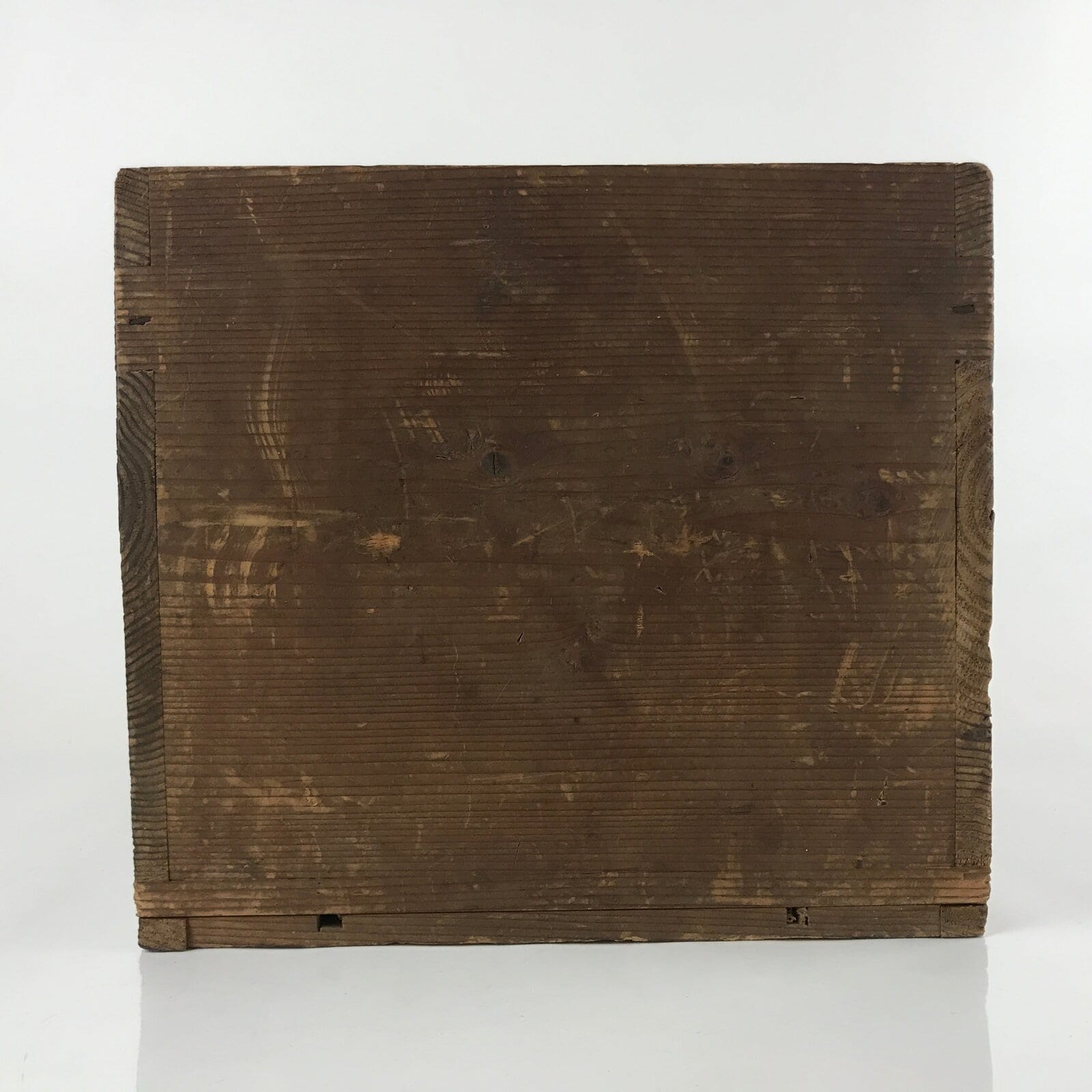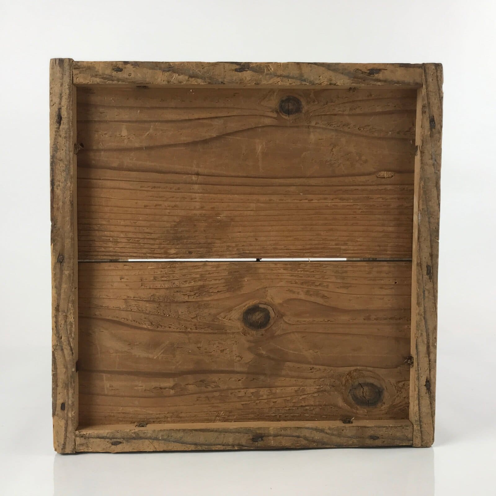 This is a vintage Japanese open wooden box. It is medium-sized and very sturdy and heavy. It is perfect for storing trinkets, craft supplies, tools, etc. It has no writing on it, so this box can also be used for DIY projects.