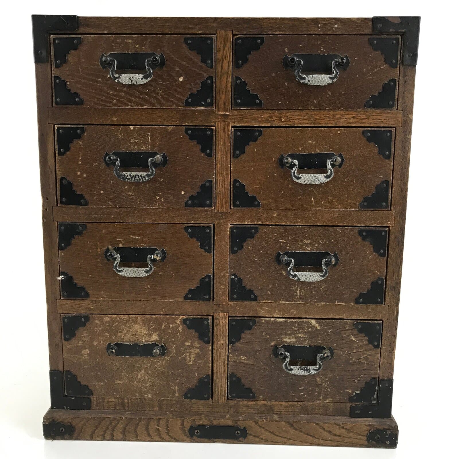 January 23, 2026Japanese Wooden Tansu Storage Chest Vtg Haribako Trinket Box 8 Drawers T384