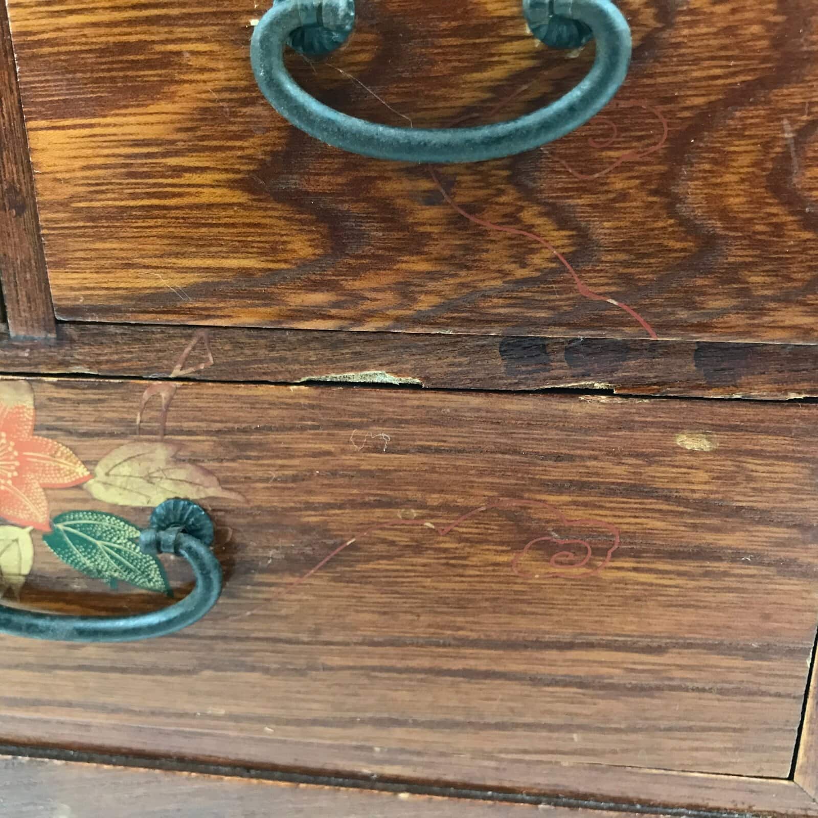 January 23, 2026Japanese Wooden Tansu Storage Chest Vtg Haribako Three Drawers Makie Floral T387