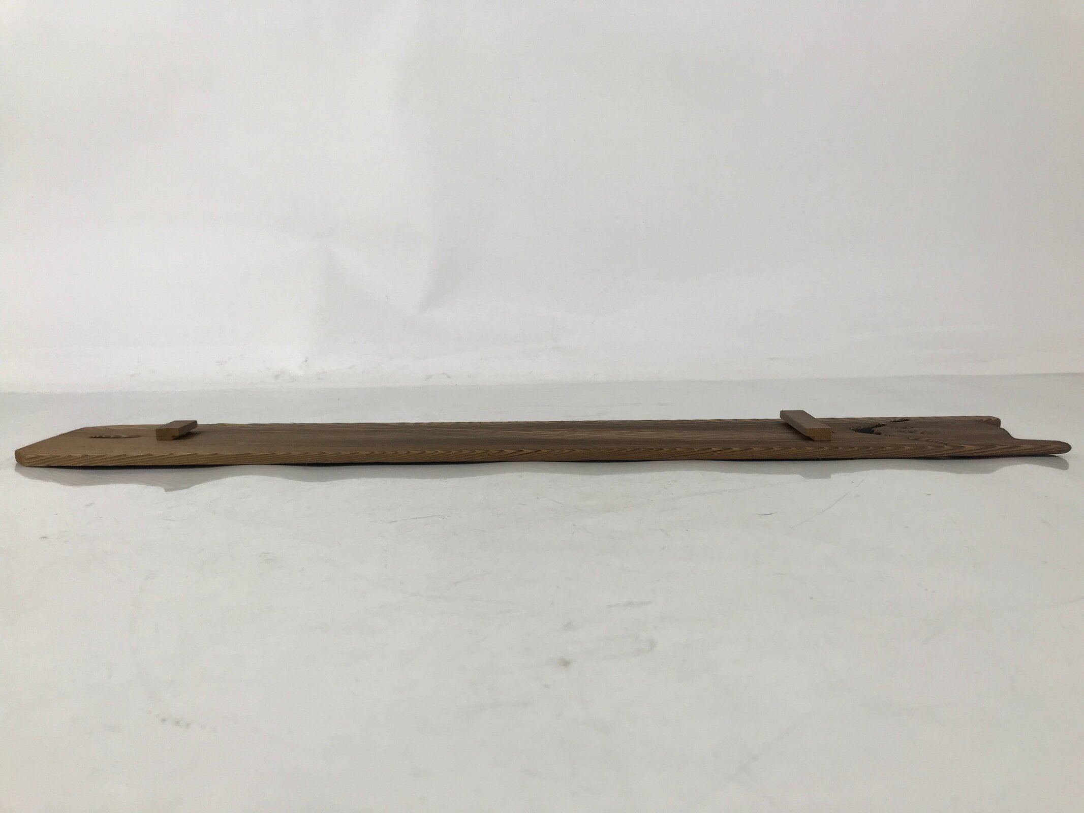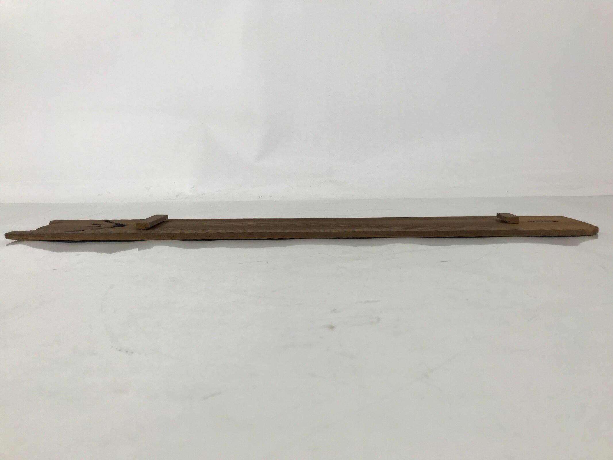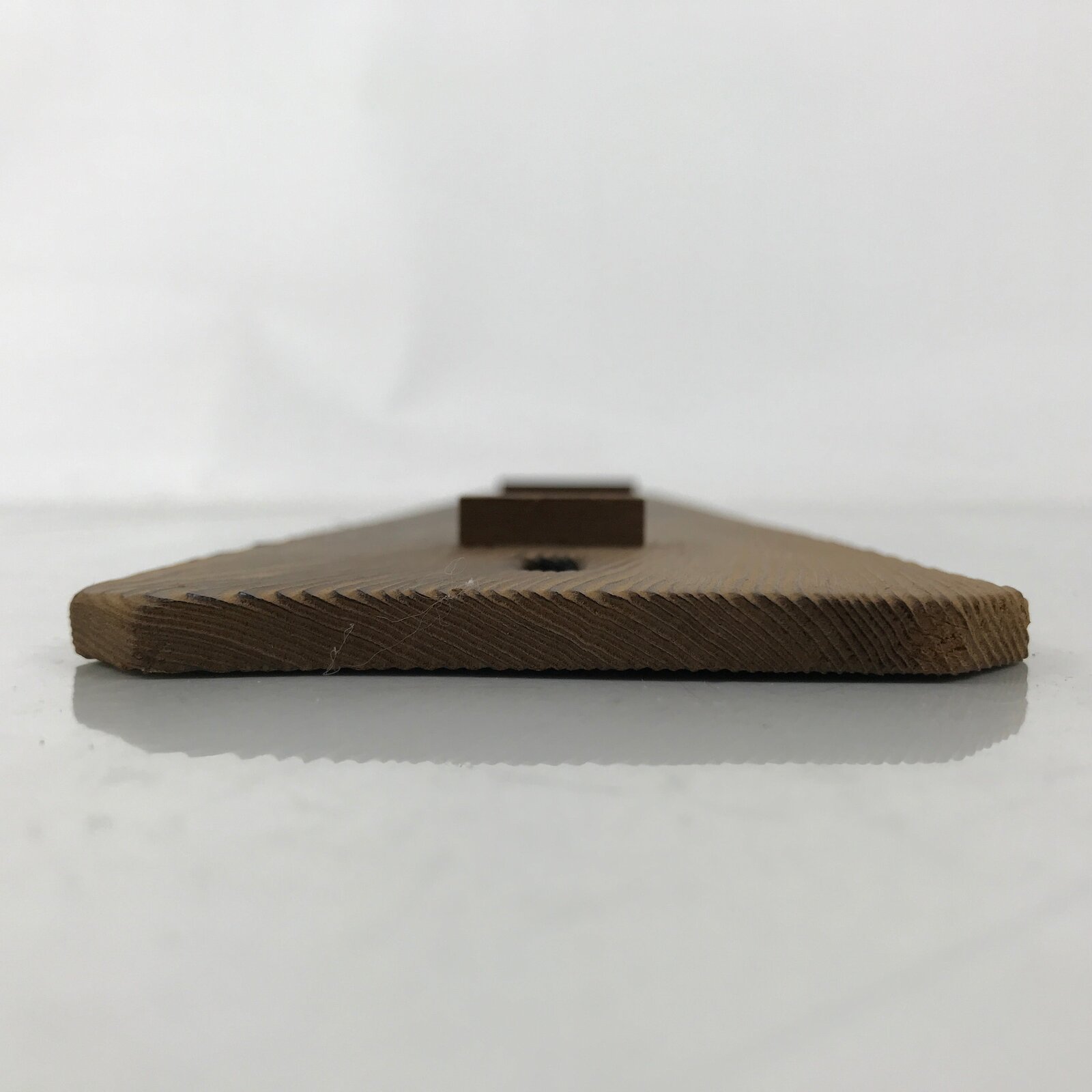 This is a vintage Japanese wooden wall hanging frame, tanzaku-kake. A tanzaku is a long and narrow shikishi used for painting and writing Japanese poems such as haiku or tanka. It has a cut-out Mt. Fuji design at the bottom. The narrow shikishi fits between two brackets.