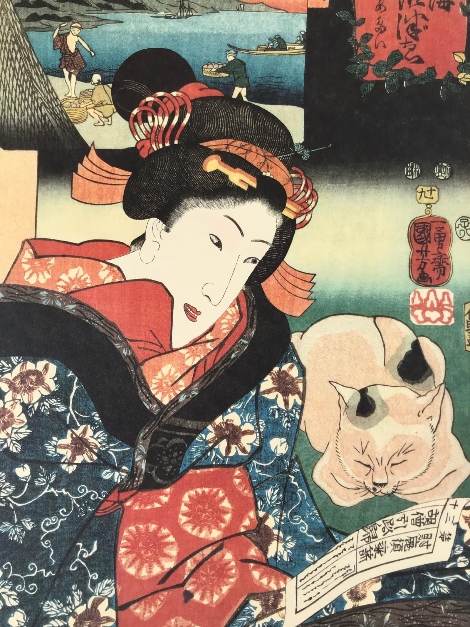 Ukiyoe is a genre of Japanese art that flourished from the 17th through 19th centuries. Its artists produced woodblock prints and paintings of such subjects as female beauties, kabuki actors and sumo wrestlers, scenes from history and folk tales, travel scenes and landscapes, flora and fauna, and erotica.