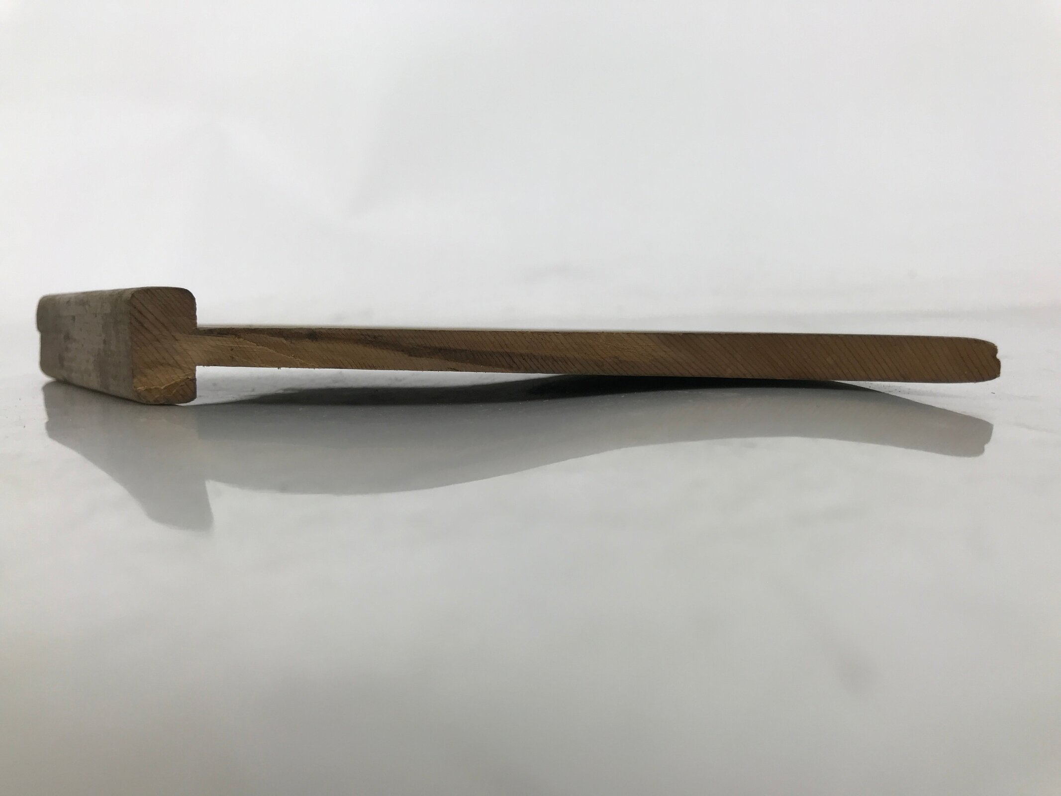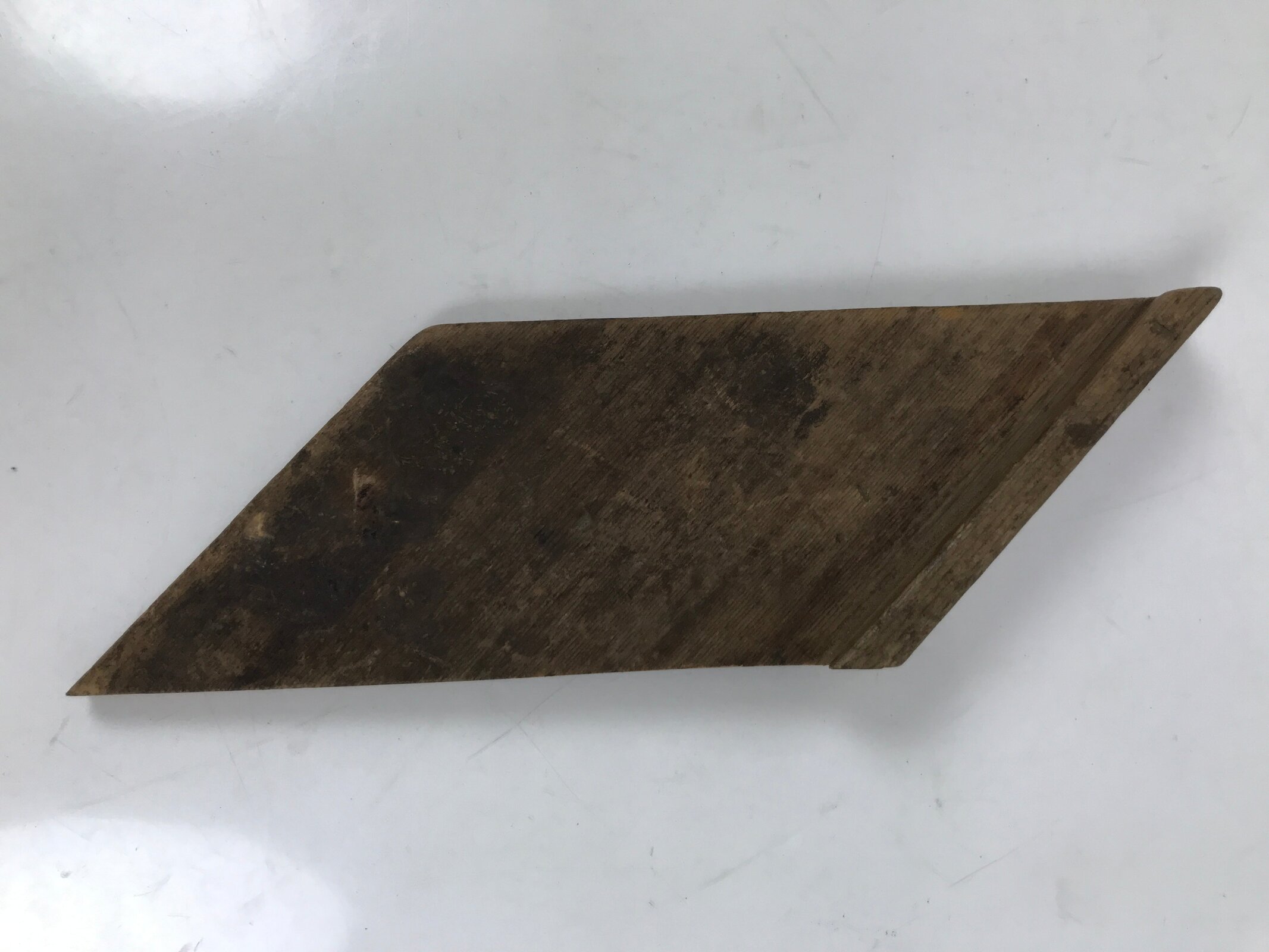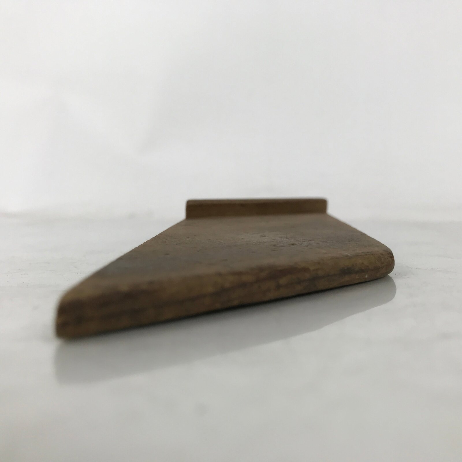 This is a vintage Japanese angle ruler for woodworking. It is a trapezoid-shaped tool used to measure a forty-five-degree angle on carpentry work.
