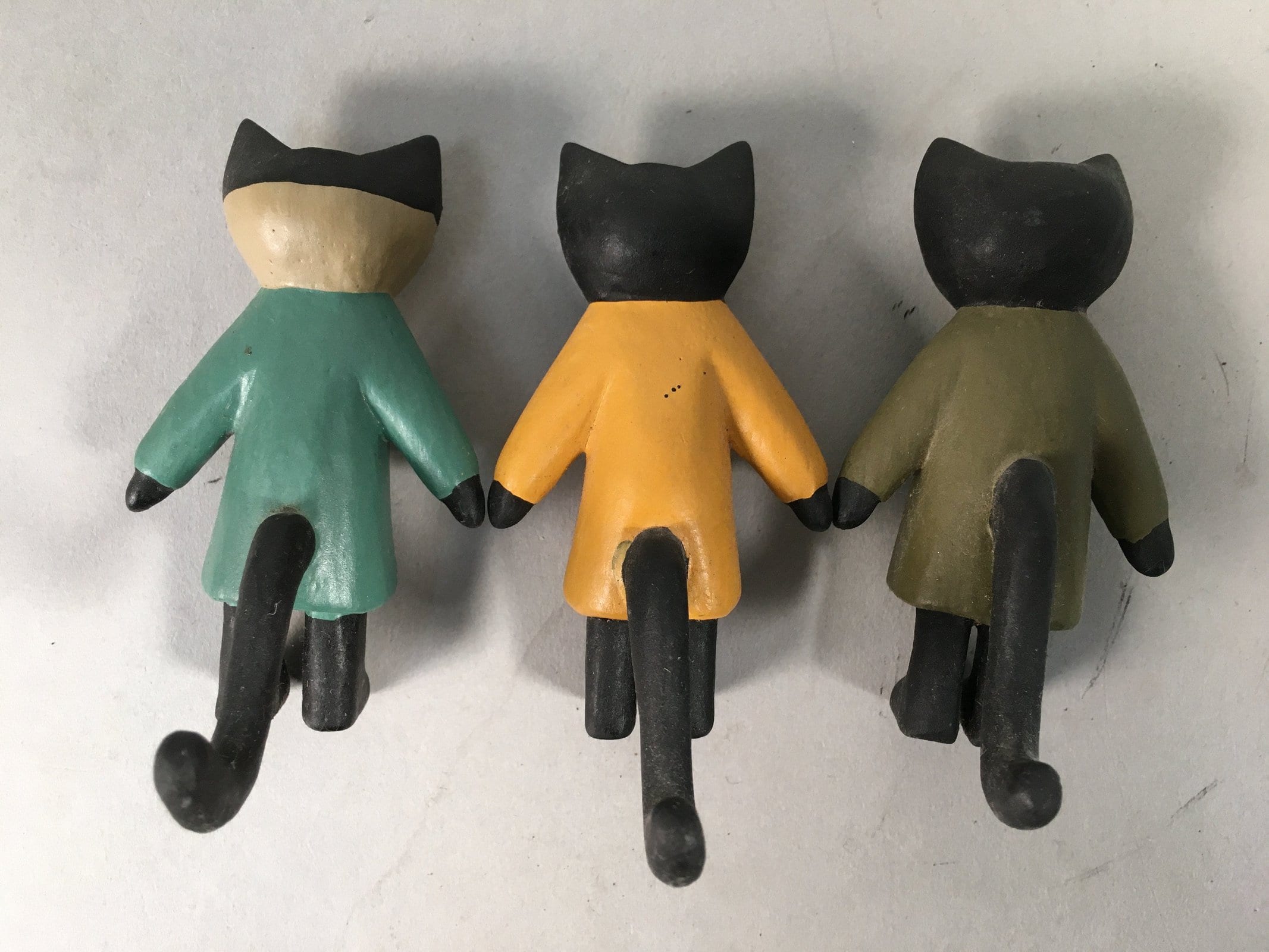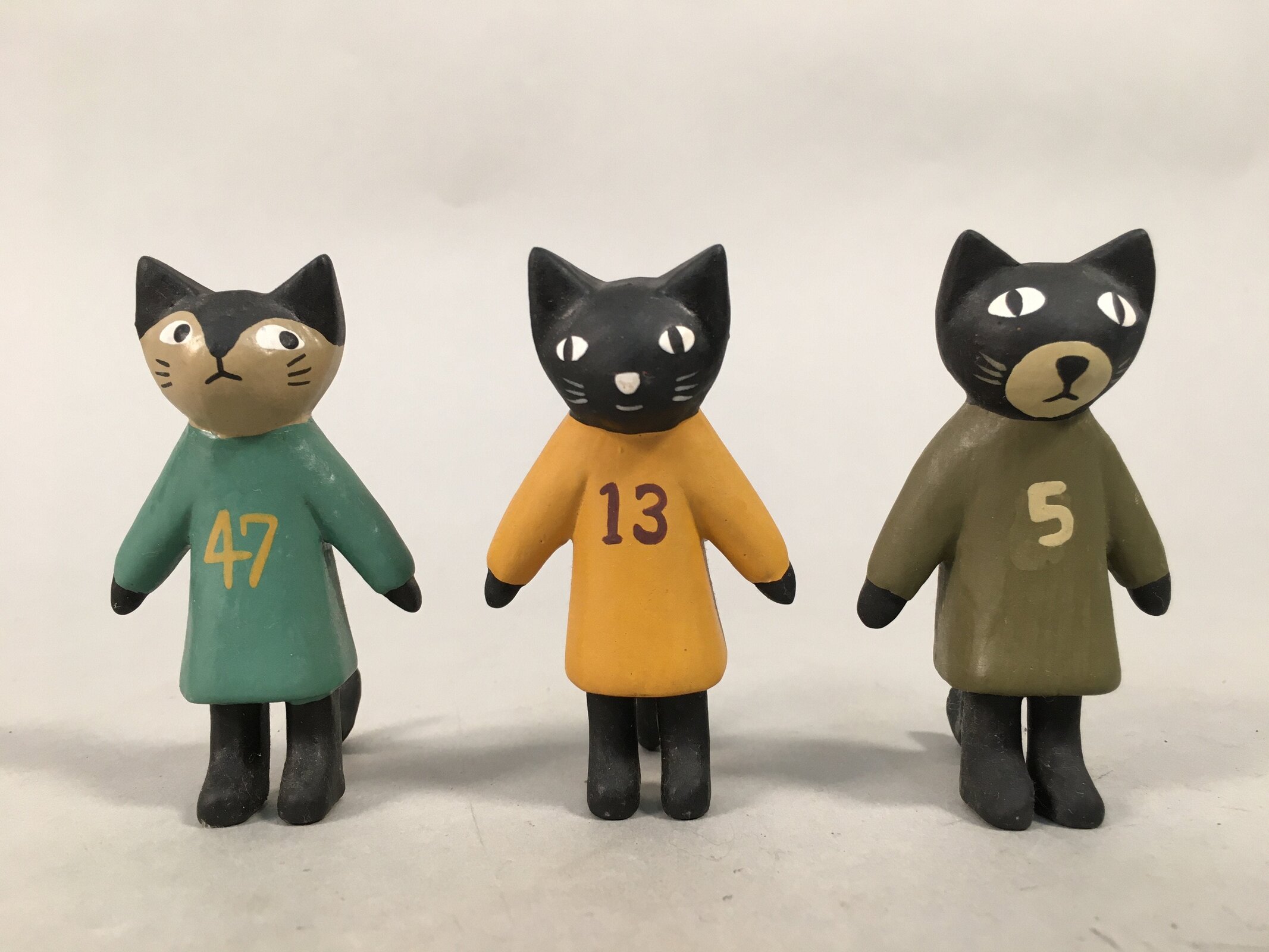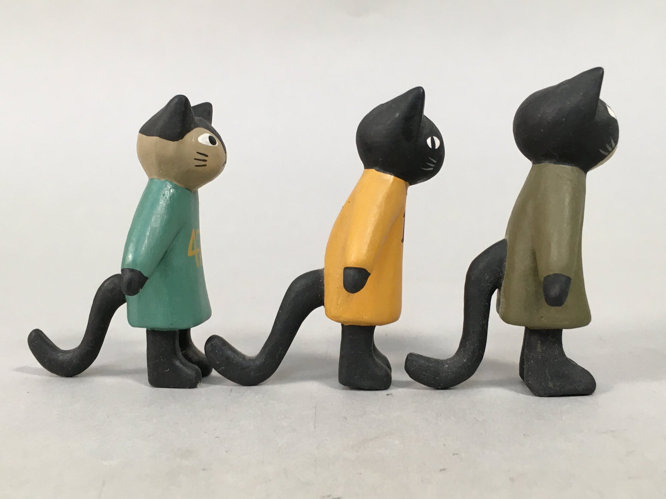 January 18, 2026Japanese Wooden Black Cat Figurine Set 3pc Vtg Doll Number Green Yellow KF440