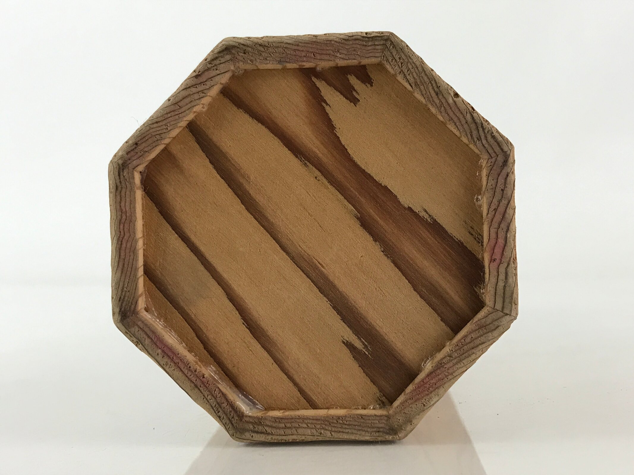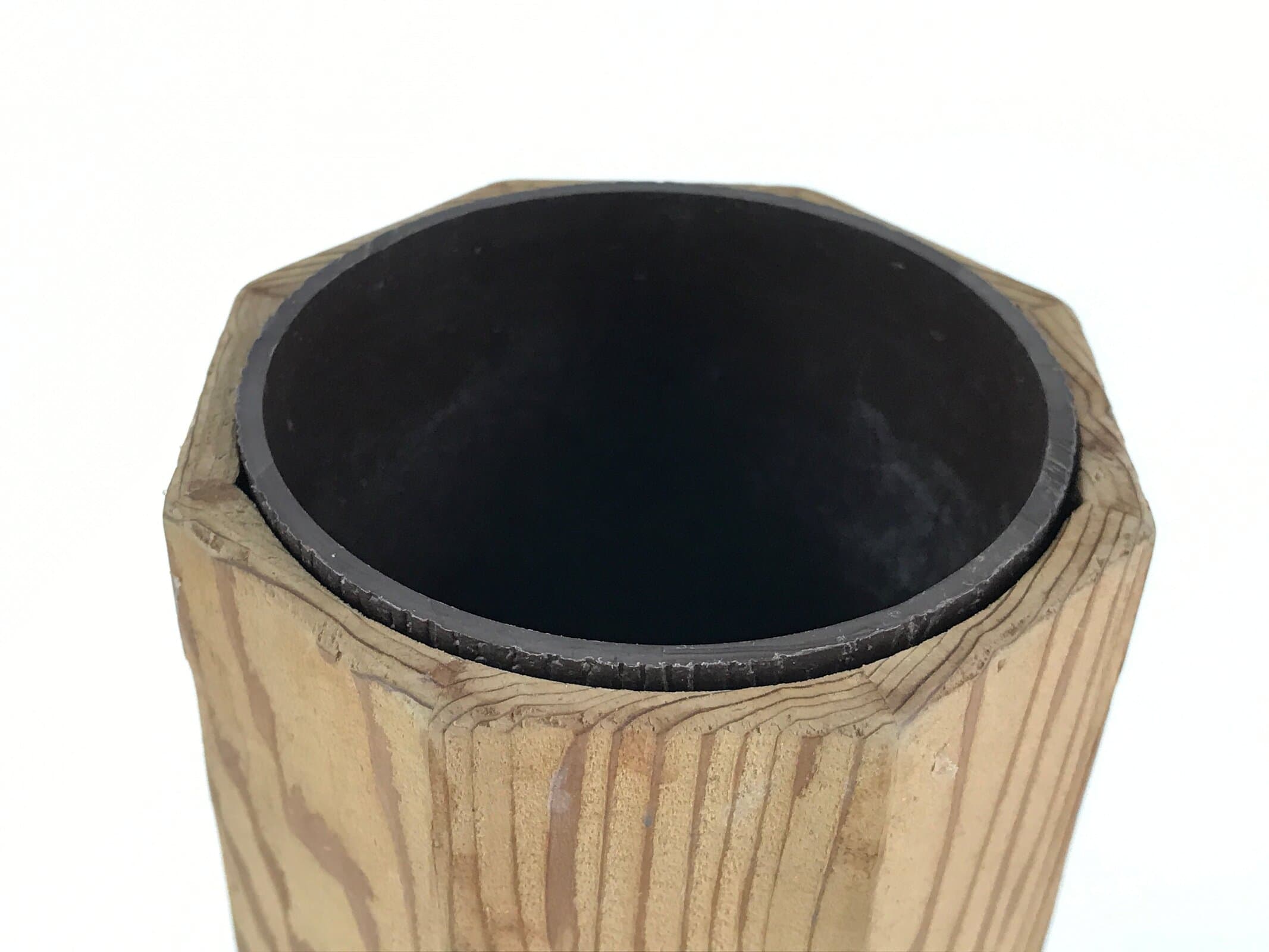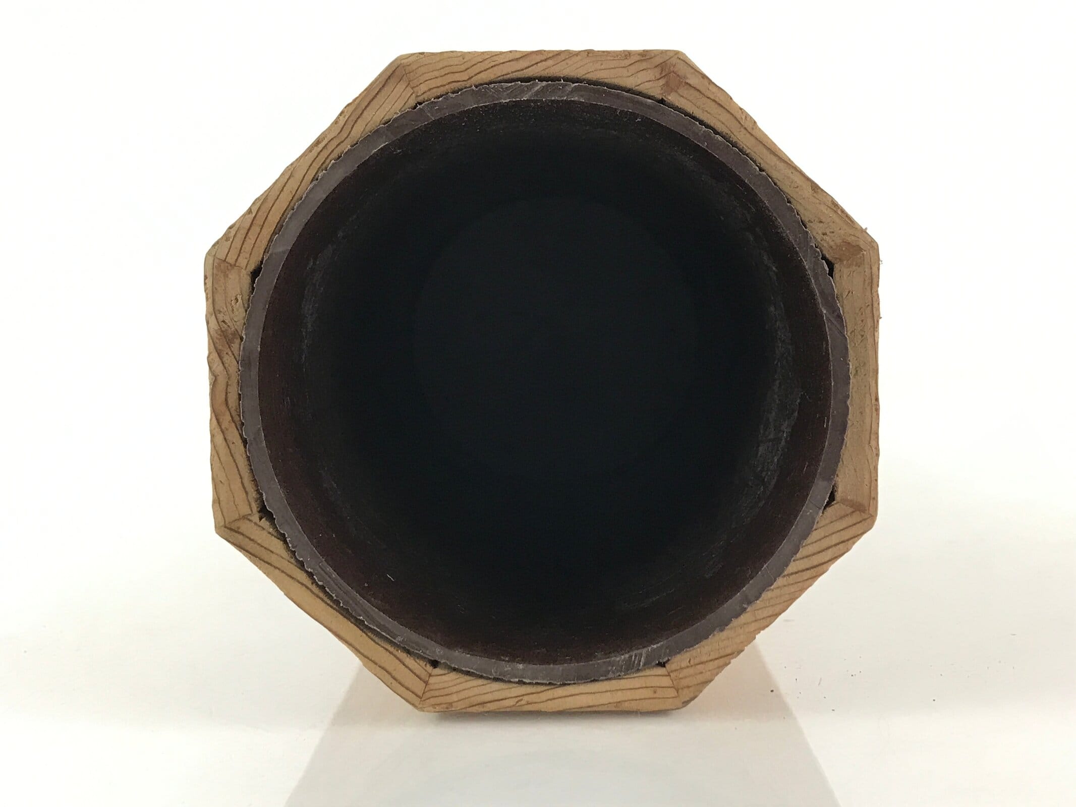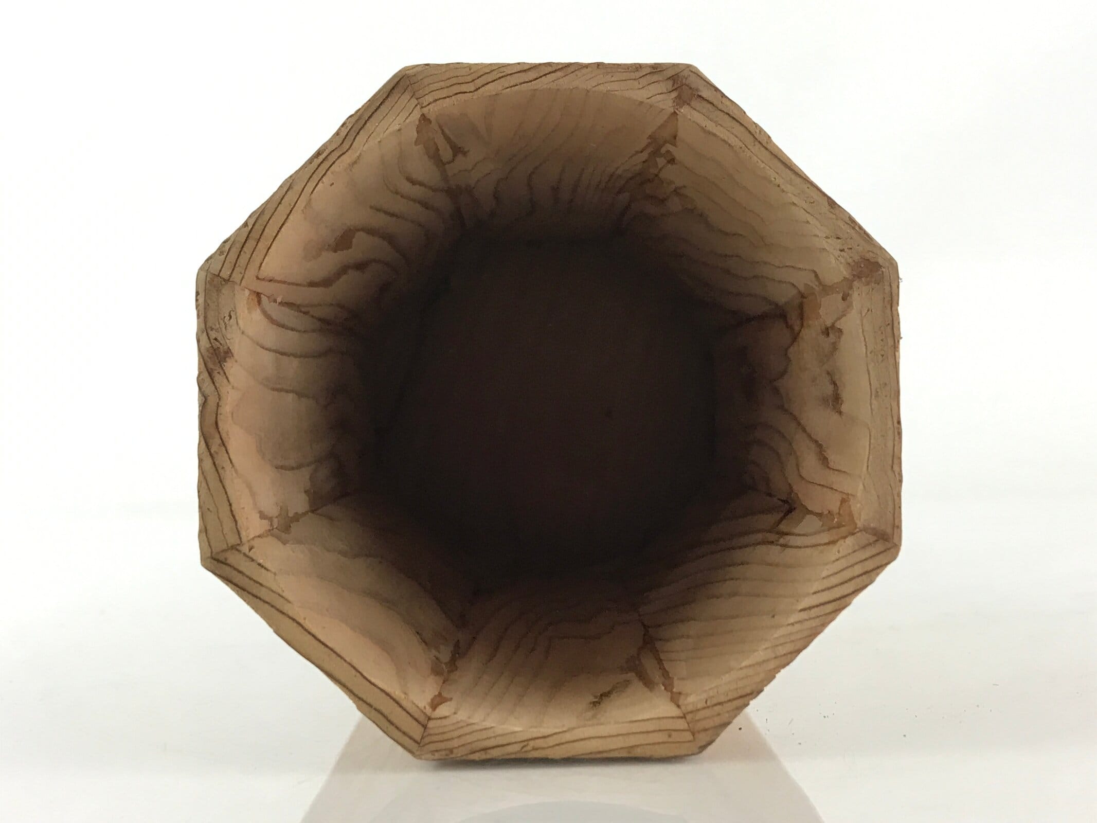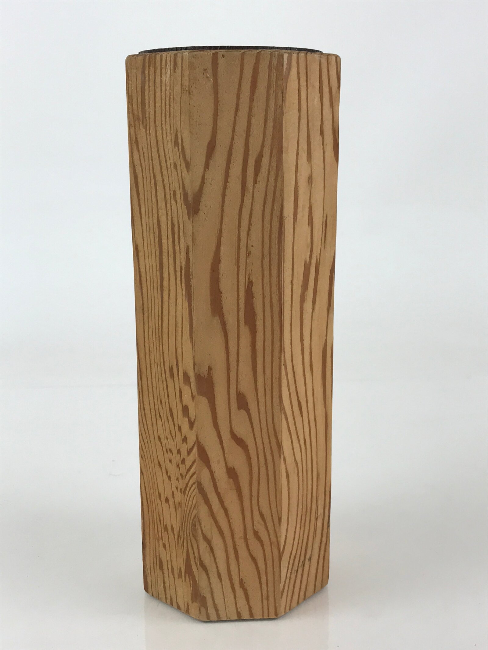 This is a Japanese vintage wooden flower vase, Kabin. It is used for flower arrangements, Ikebana. Ikebana is one of the Japanese art cultures. This is an octagon cylindrical vase with a plastic vase inside.