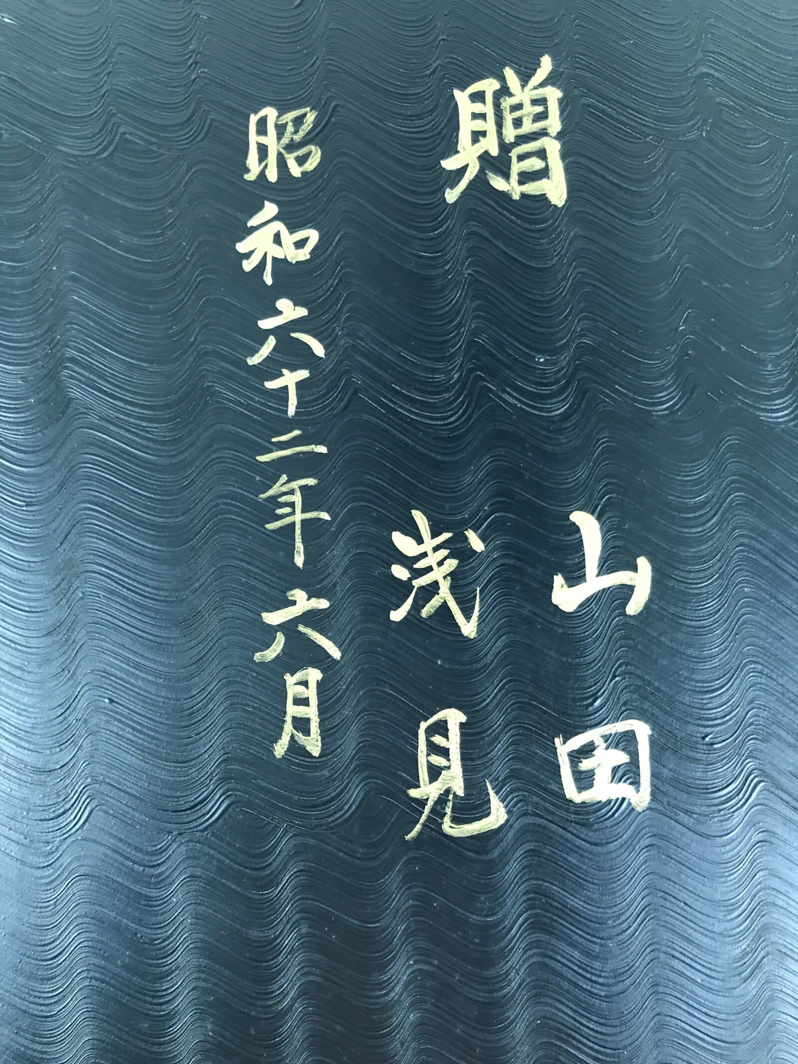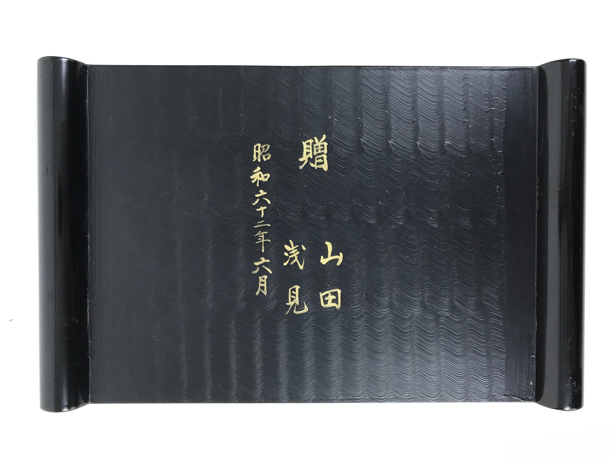 - Kanji on the back: 贈 gift, 山田 浅見, family names, 昭和六十二年六月 June of 1987