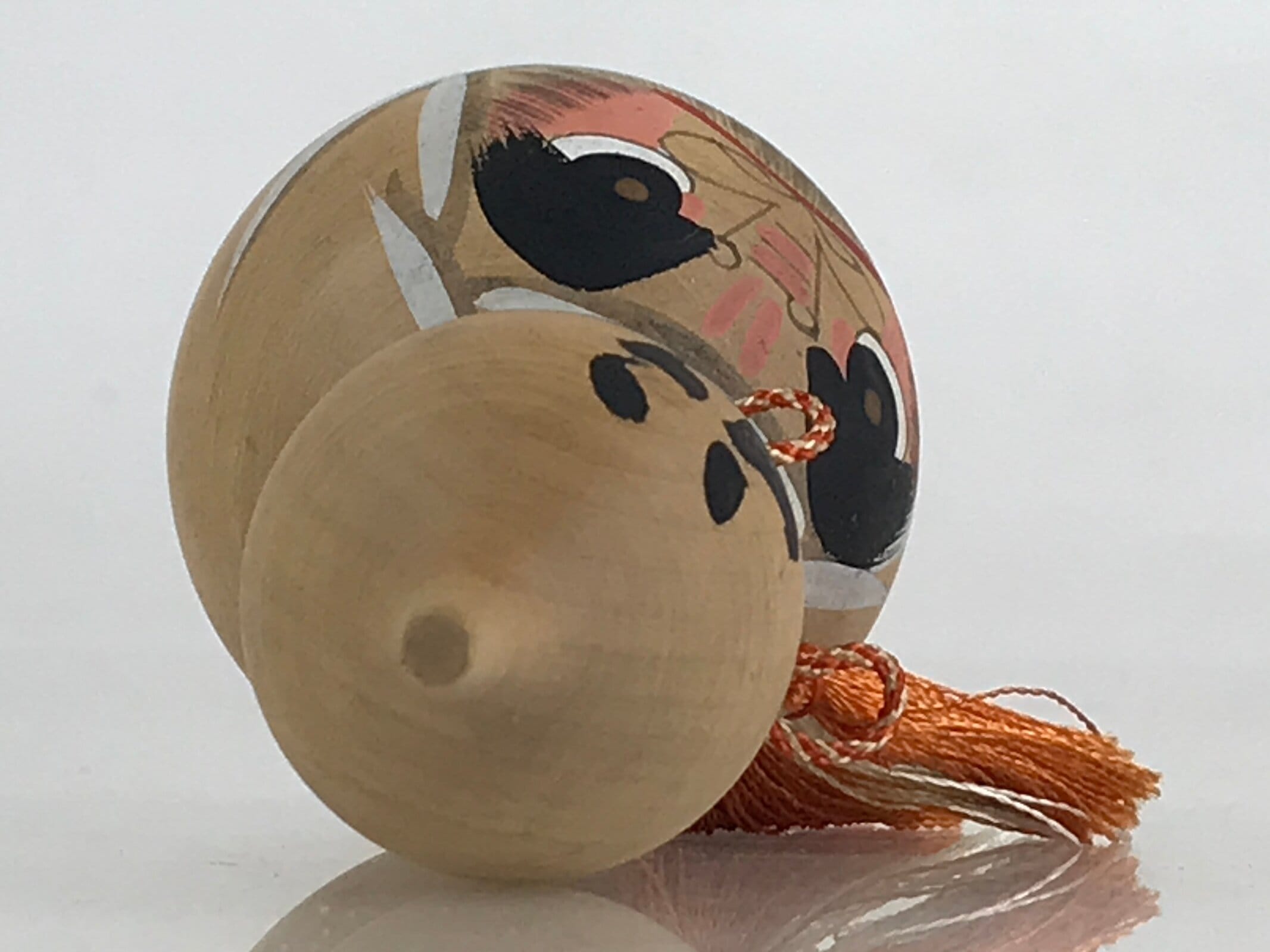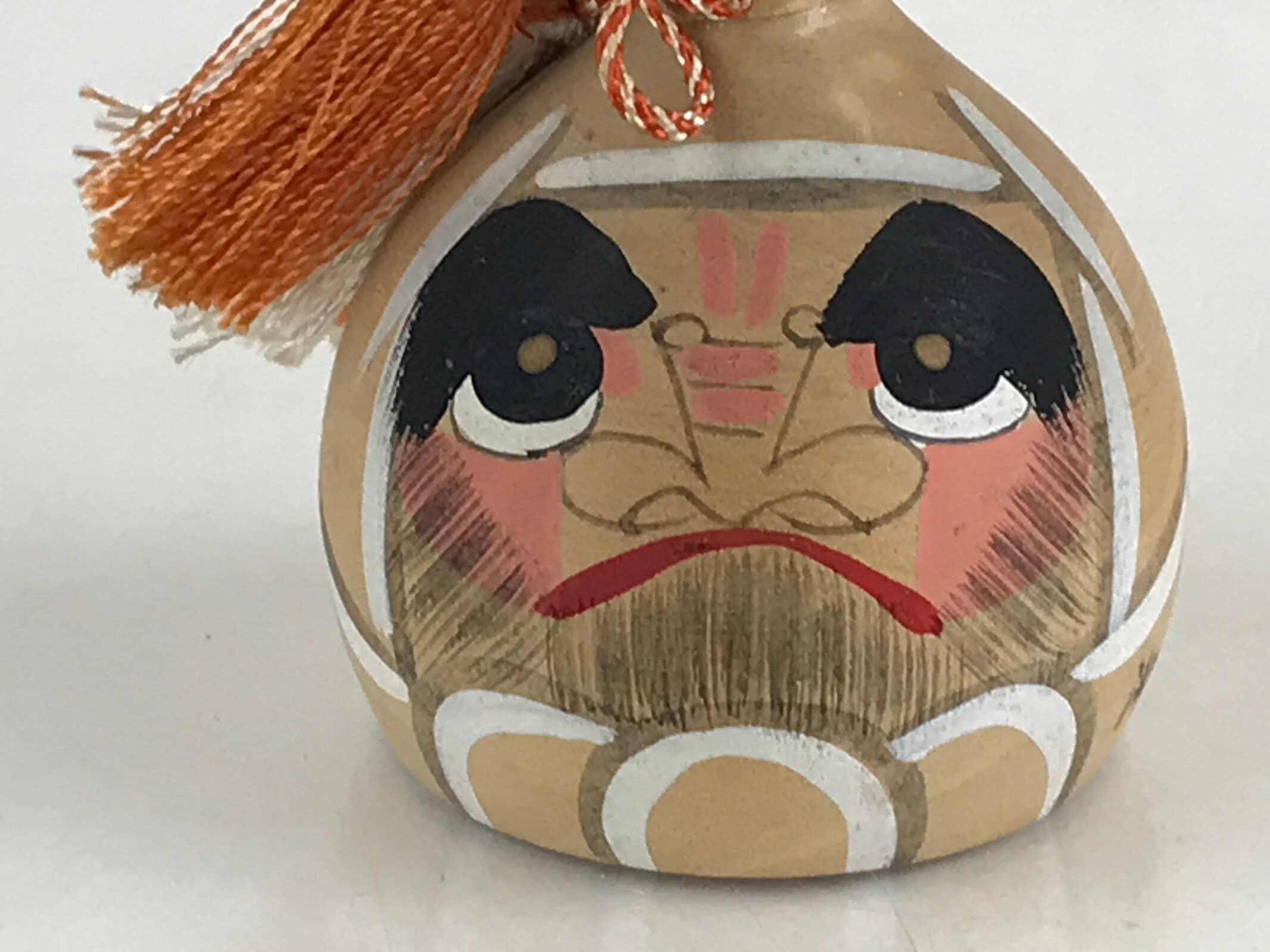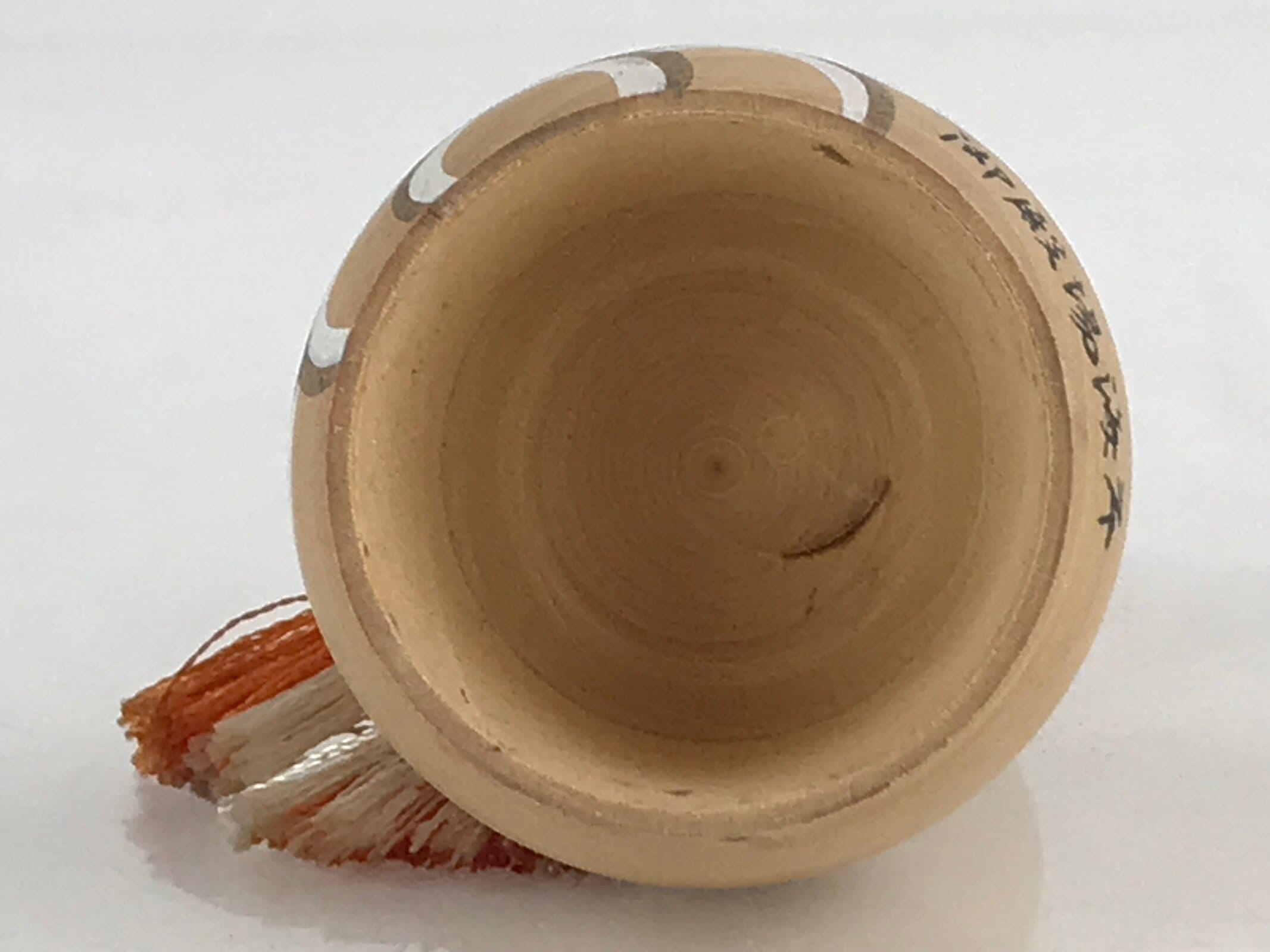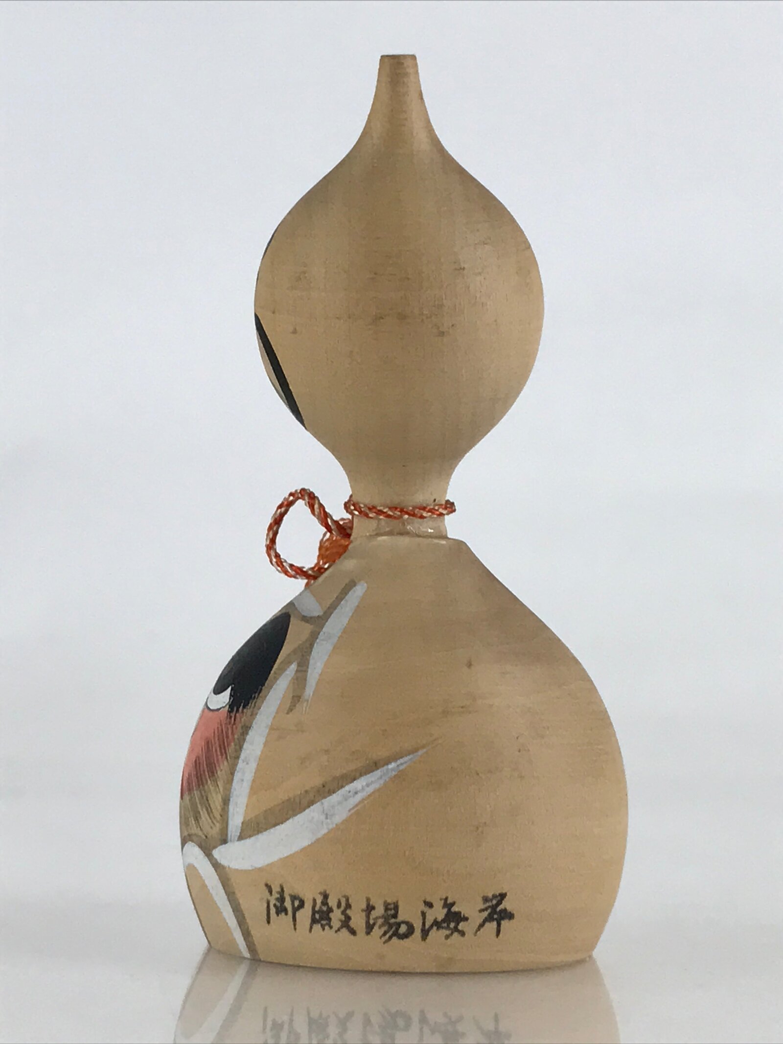 This is a vintage Japanese traditional craft wooden kokeshi doll, figurine. The daruma in the shape of a gourd has the kanji written meaning “Good fortune”. Kokeshi are simple wooden Japanese dolls with no arms or legs that have been crafted for more than 150 years (the late Edo period) as a toy and amulets for children.