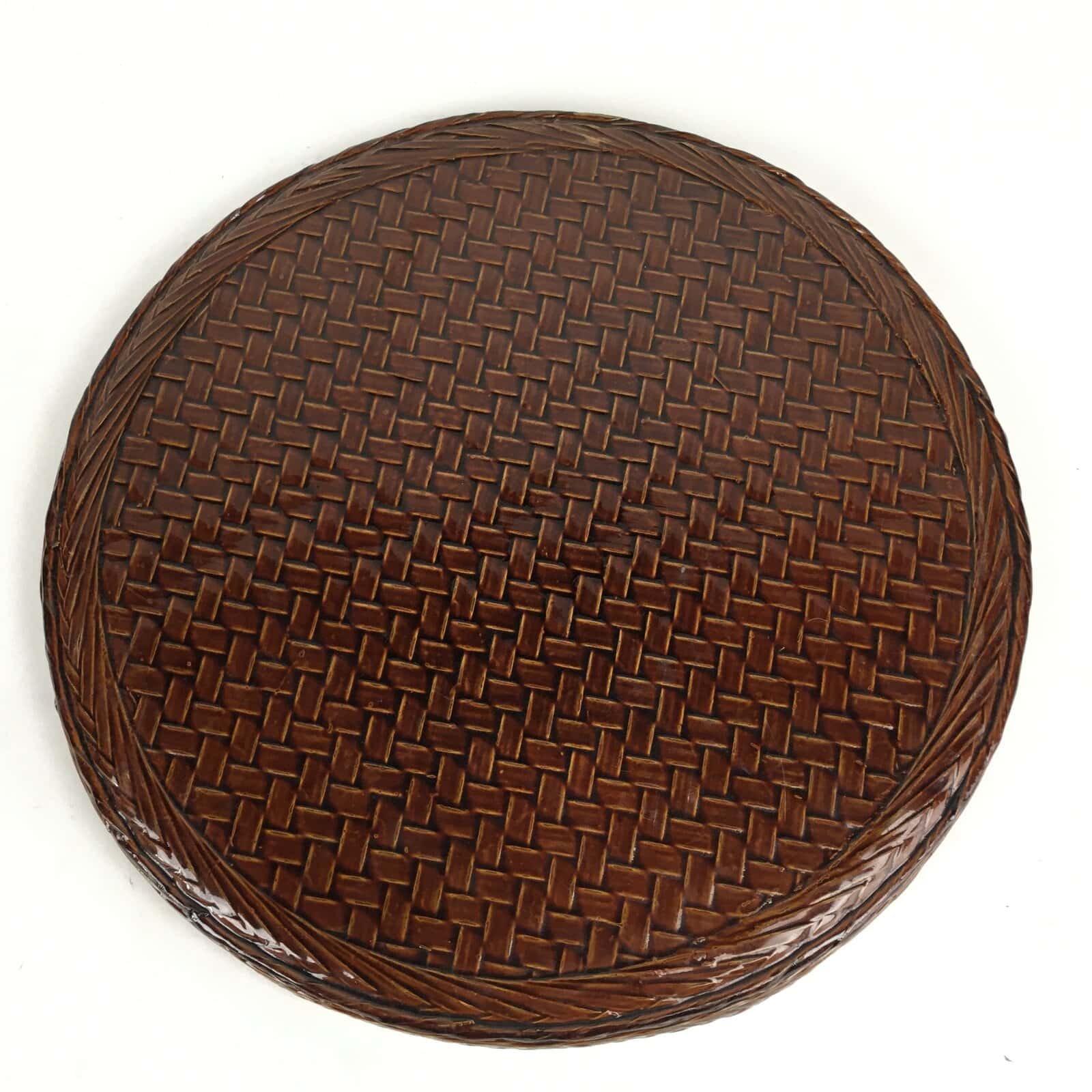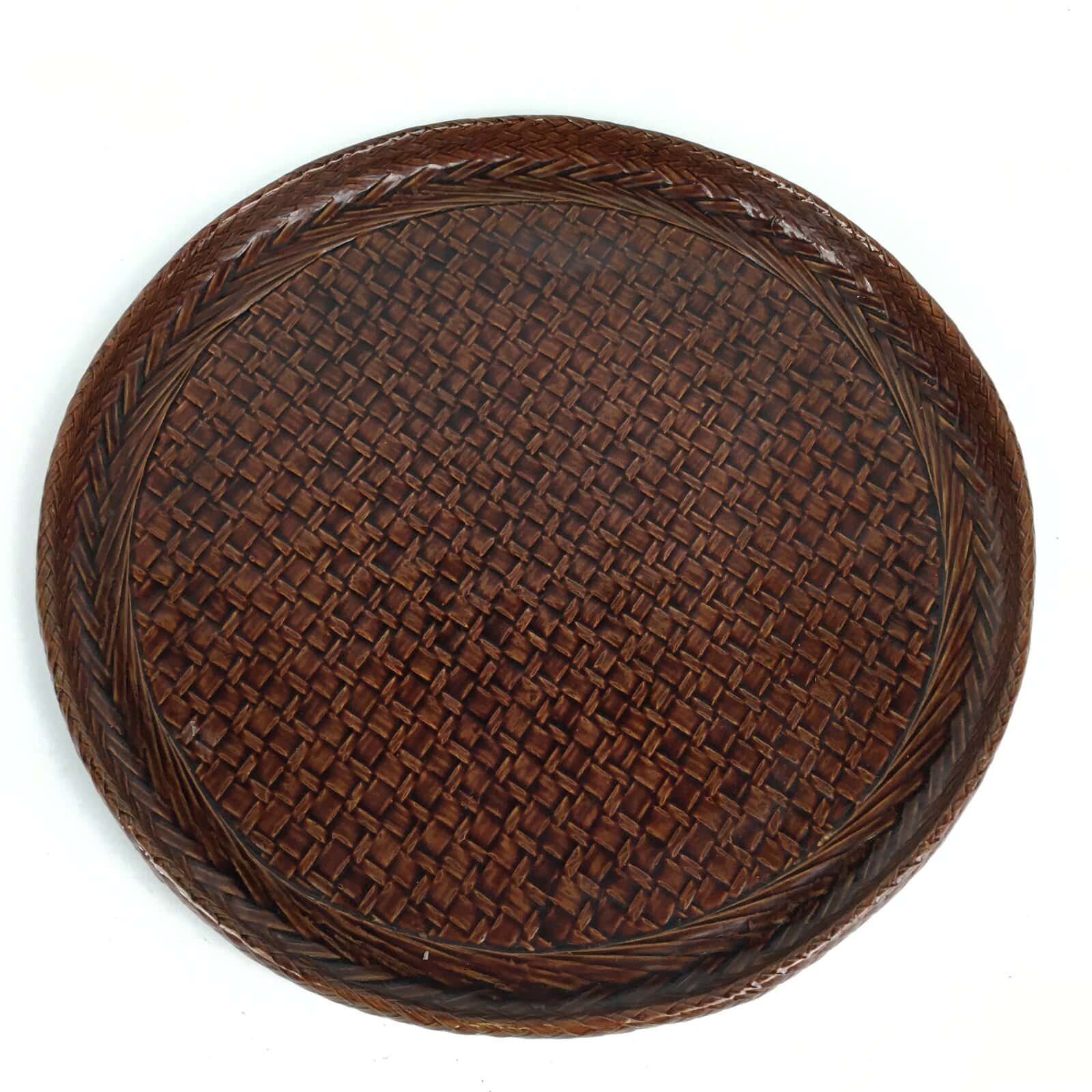 Japanese Wooden Lacquered Tray Obon Vtg Round Bamboo Work UR633