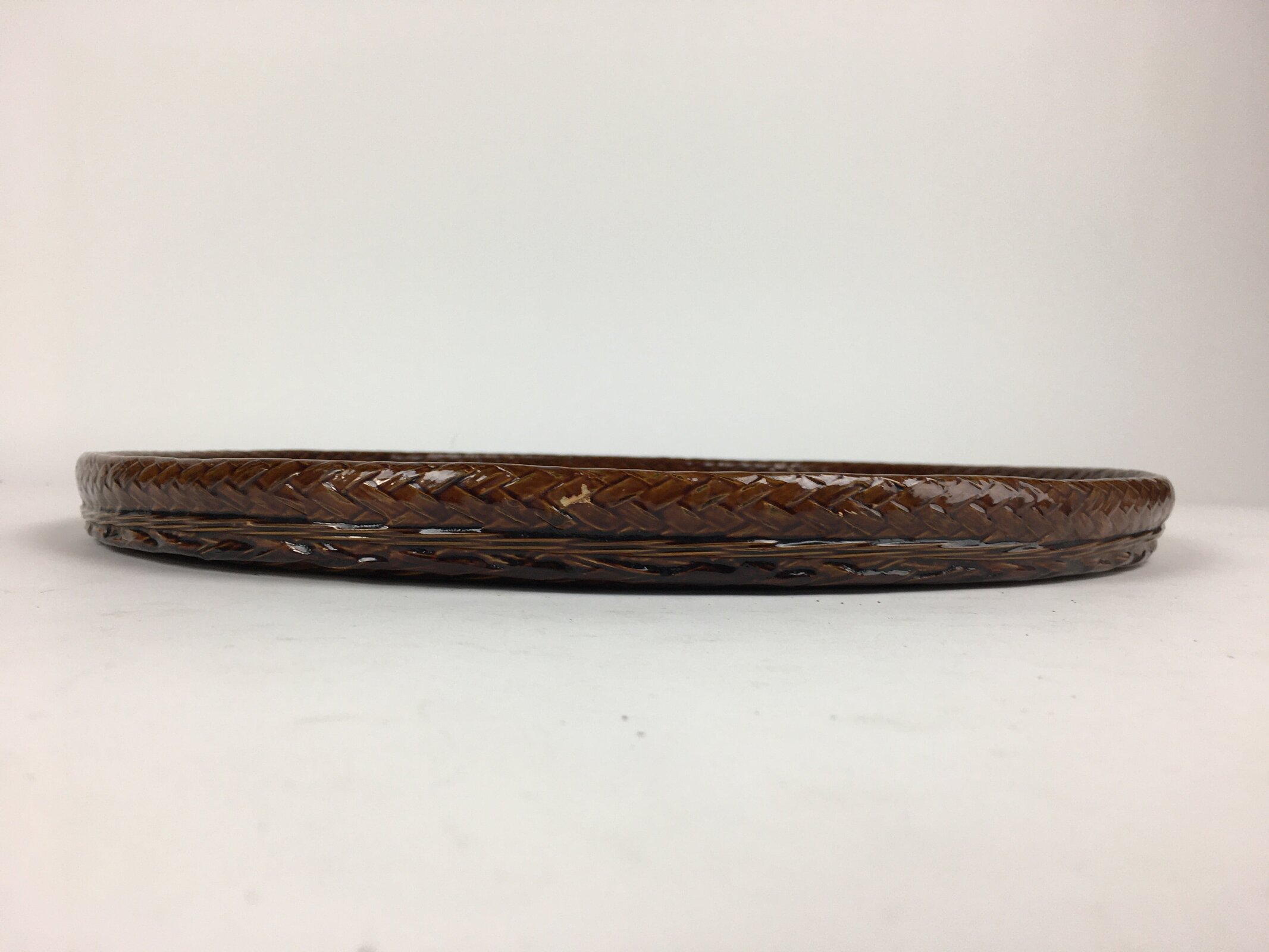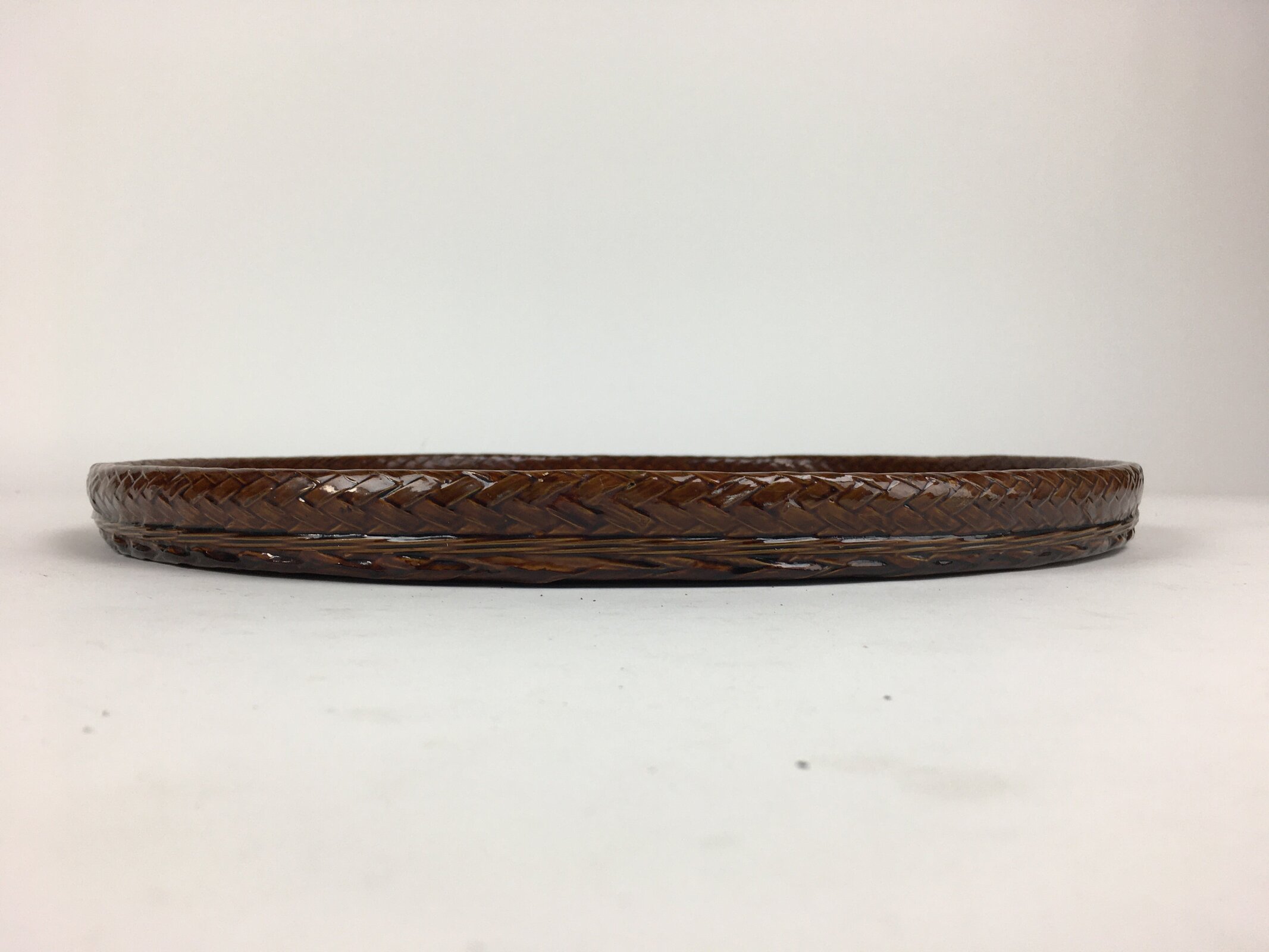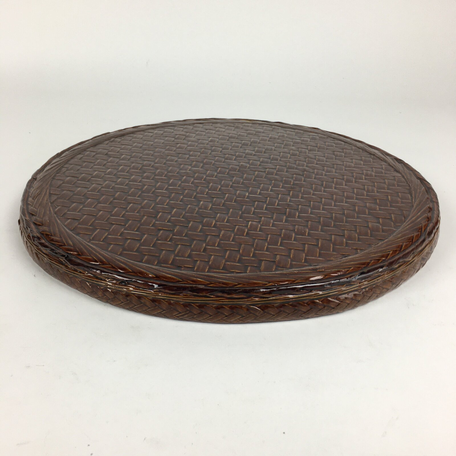 Japanese Bentwood Lacquered Tray Obon Vtg Shunkei-Nuri Round Brown UR635