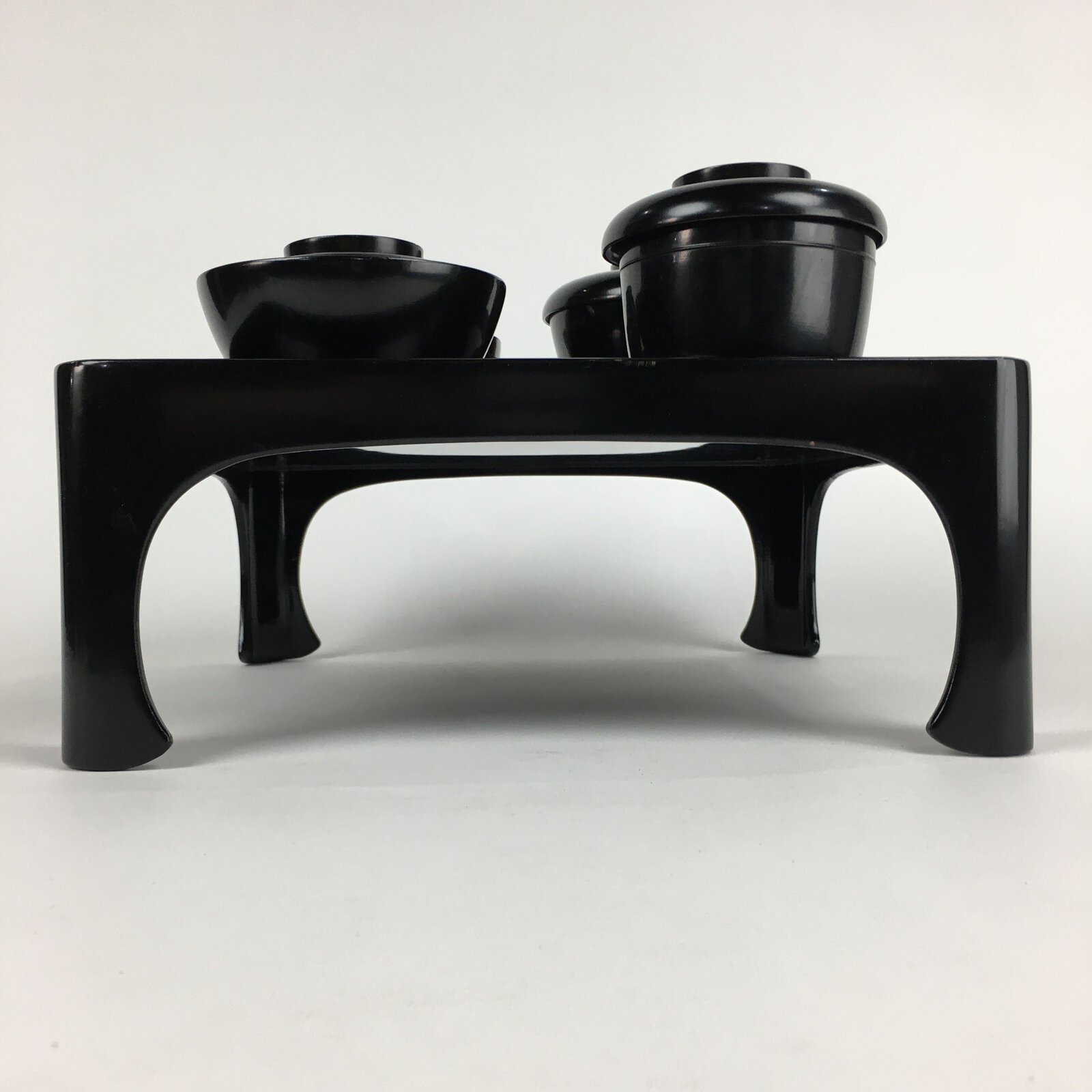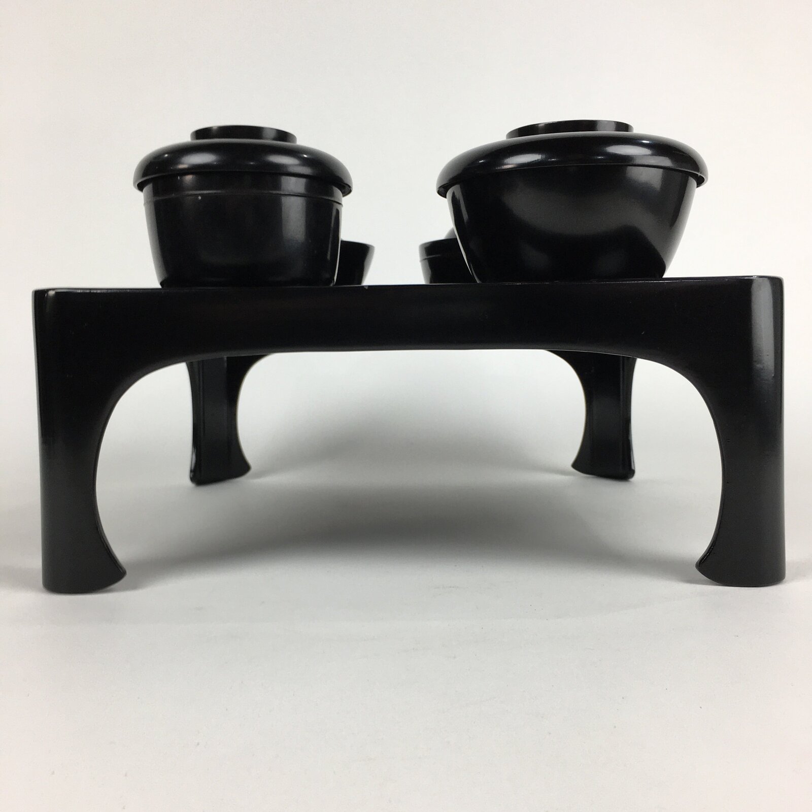 Japanese Wooden Legged Tray Lacquered Table Lidded Bowls Set Vtg Ozen UR725
