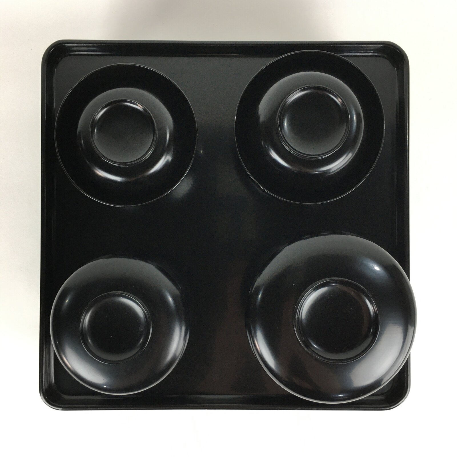 - Approx. Obon 32cm long x 32cm wide x 13cm tall, 1.Bowl 12.2 cm wide x 6.8 cm tall (lid 13 cm wide), 2.Bowl 12.2 cm wide x 5 cm tall (lid 10.4 cm wide), 3.Bowl 11.3 cm x 5 cm (lid 9.5 cm wide) 4.Bowl 9.5 cm x 6.8 cm ( lid 10.5 cm wide)