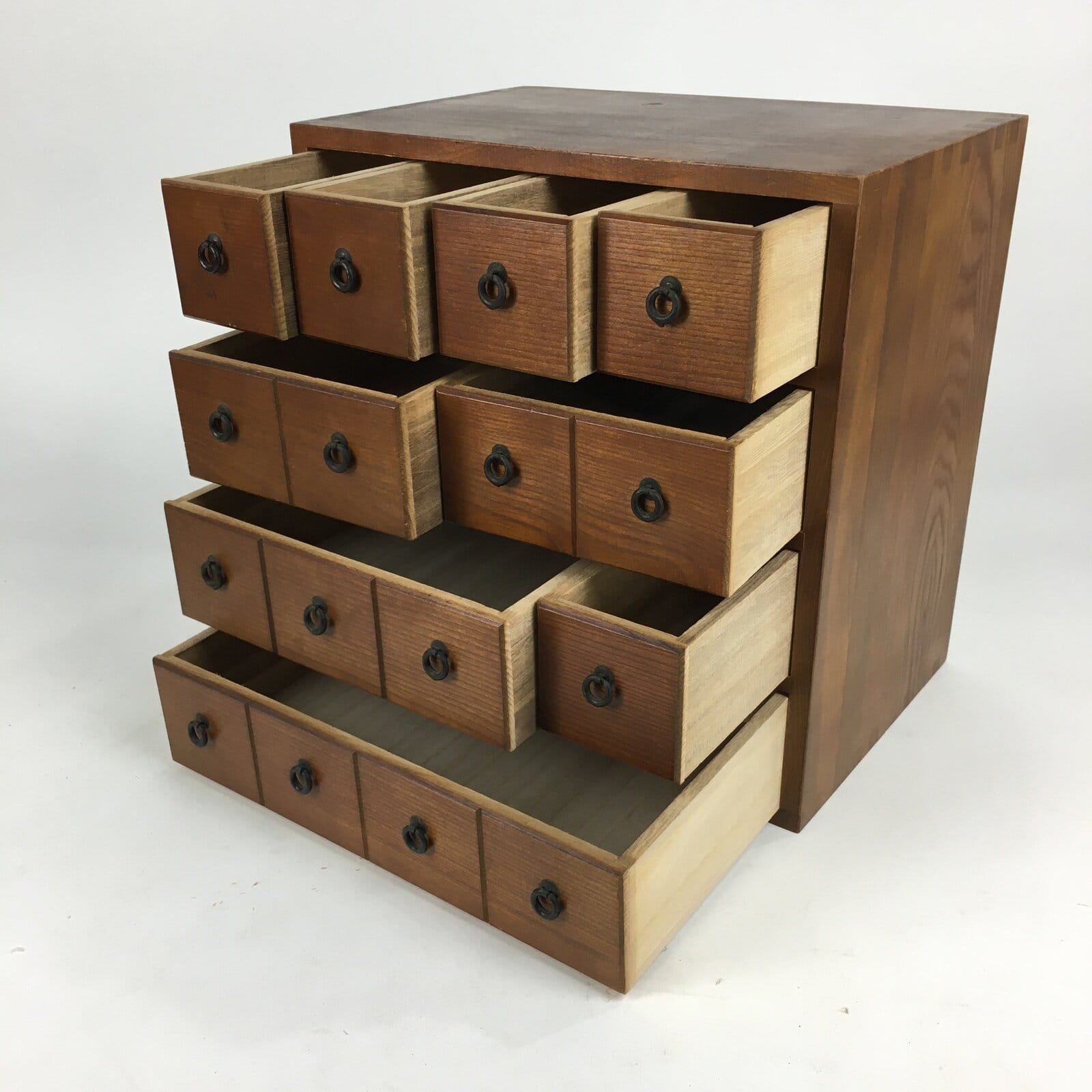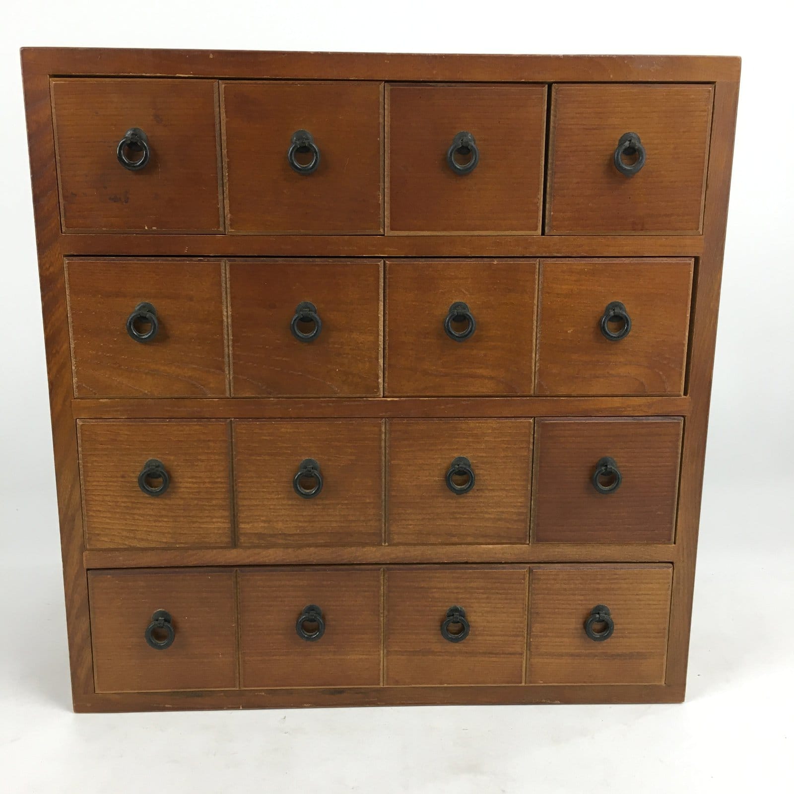 January 18, 2026Japanese Wooden Medicine Chest Vtg Kusuri Tansu 9 Drawers Brown T282