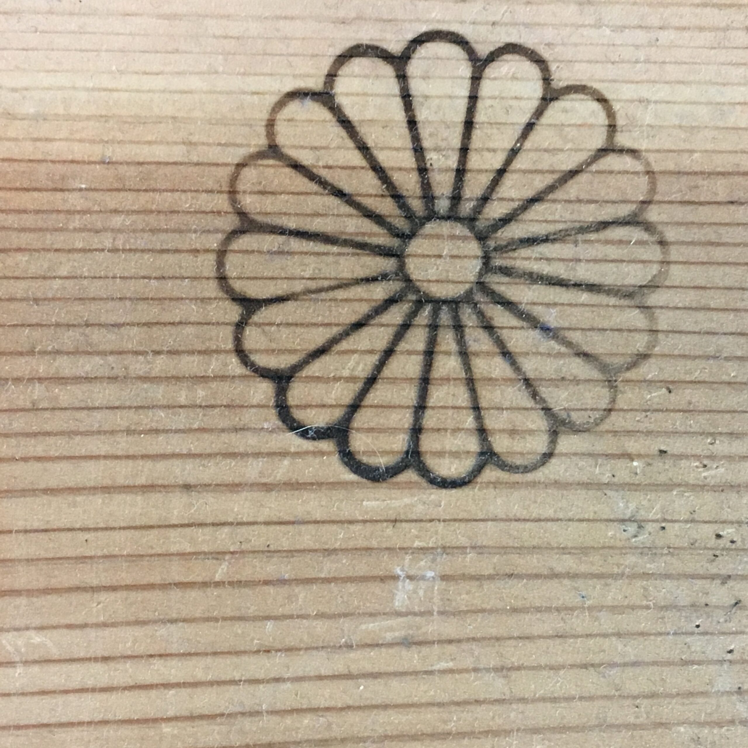 Japanese Wooden Plate Vtg Straight Grain Temple Chrysanthemum Crest UR227