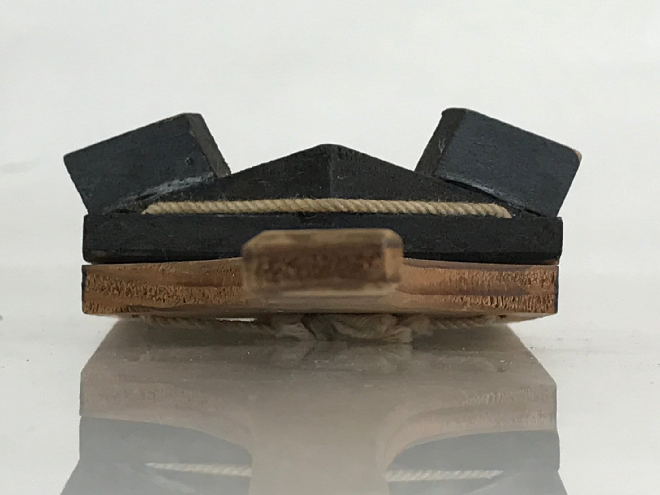 This is a wooden castanet of Japanese Yamagata Prefecture folk art folk toy. A red lion’s head and a wooden board with a handle are tied with a string. This is called The Shonai board lion (庄内板獅子).